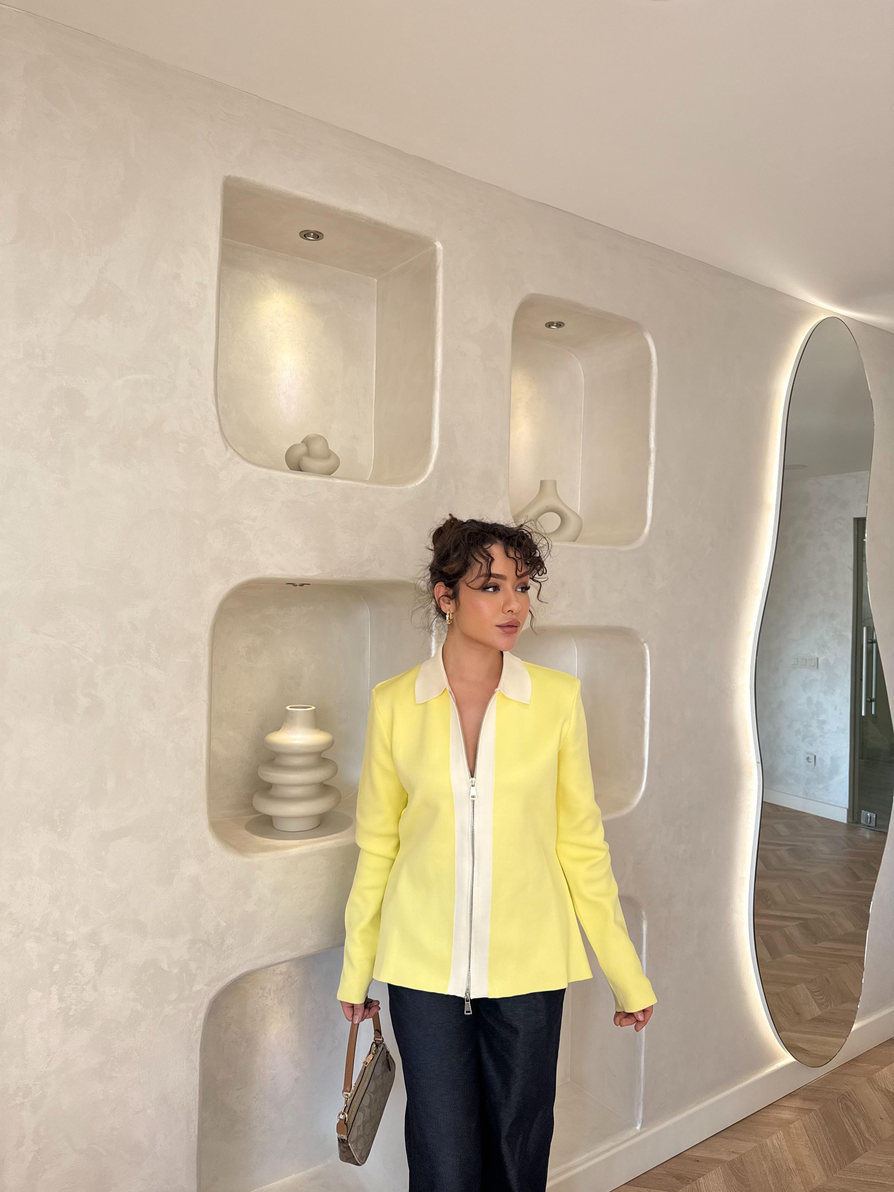 KAZK-573H&R ButikAda Ön Fermuarlı Çelik Örme Triko Sarı