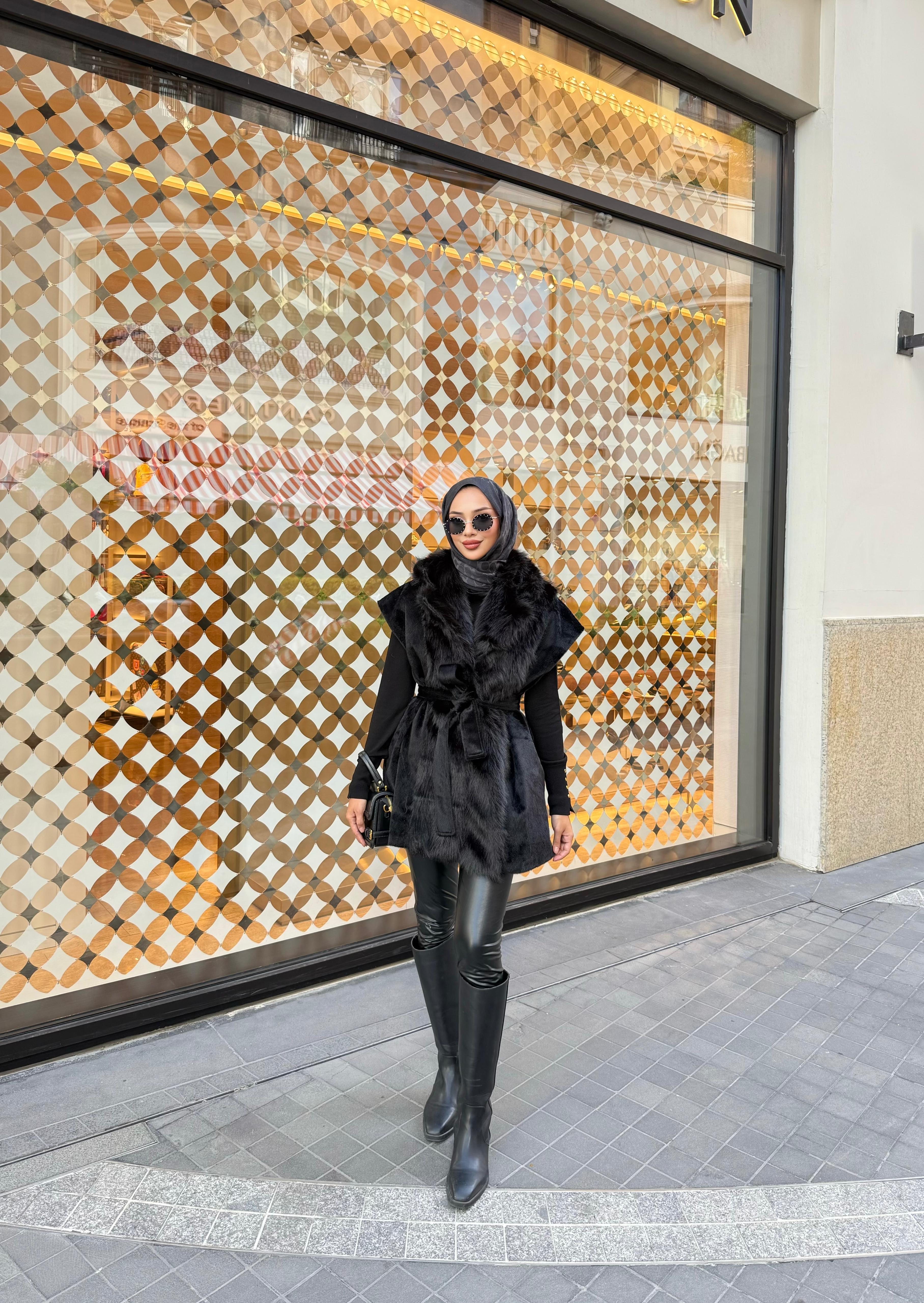 YELEK-276H&R ButikBasli Kürk Yelek Siyah