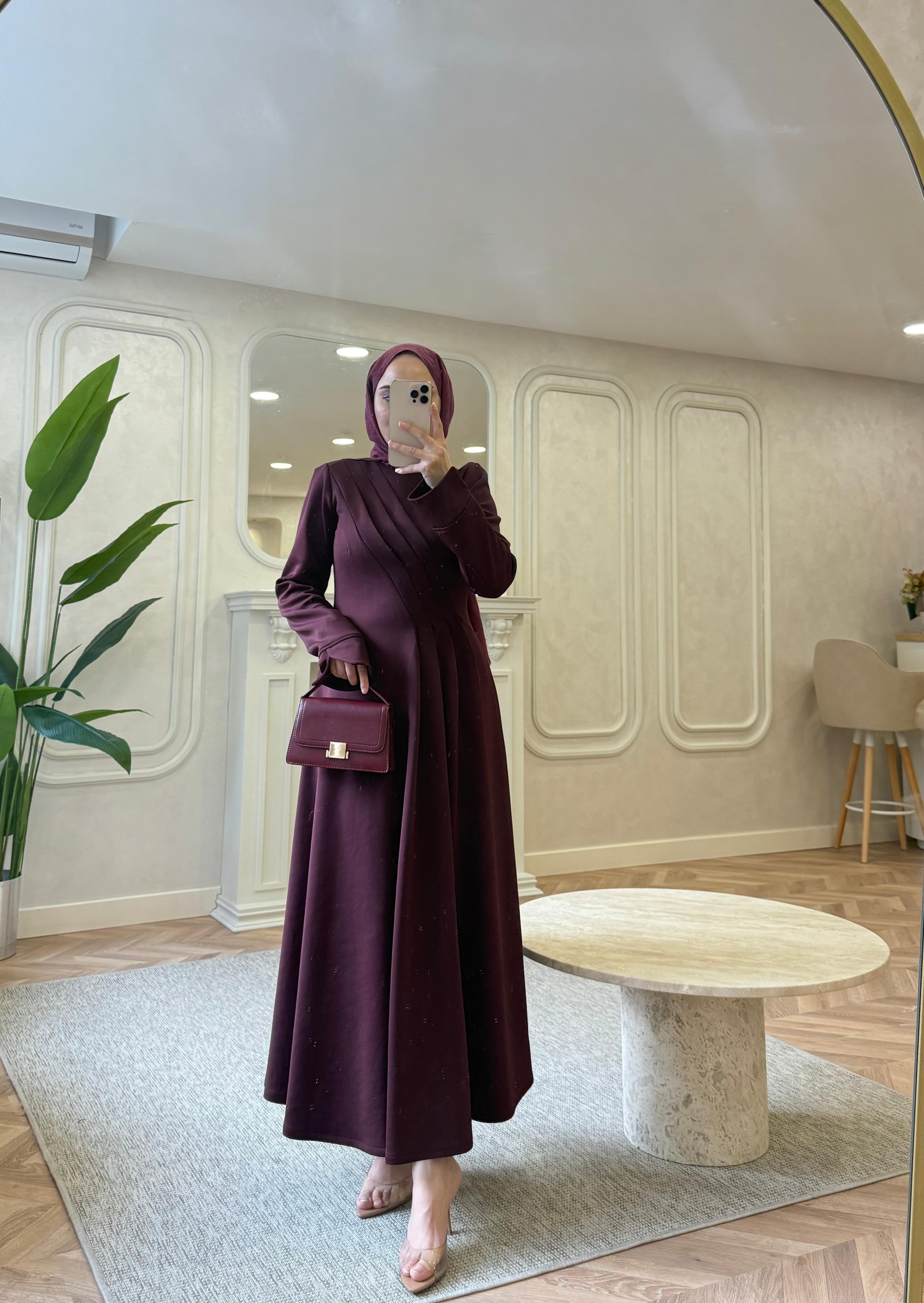 ELBSE-04H&R ButikBear Scuba Elbise Bordo