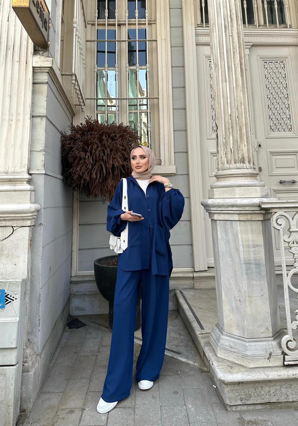 Ürün Krep kumaştan üretilmiştir Pantolon beli lastikli bol paçadır Önü komple düğmelidir