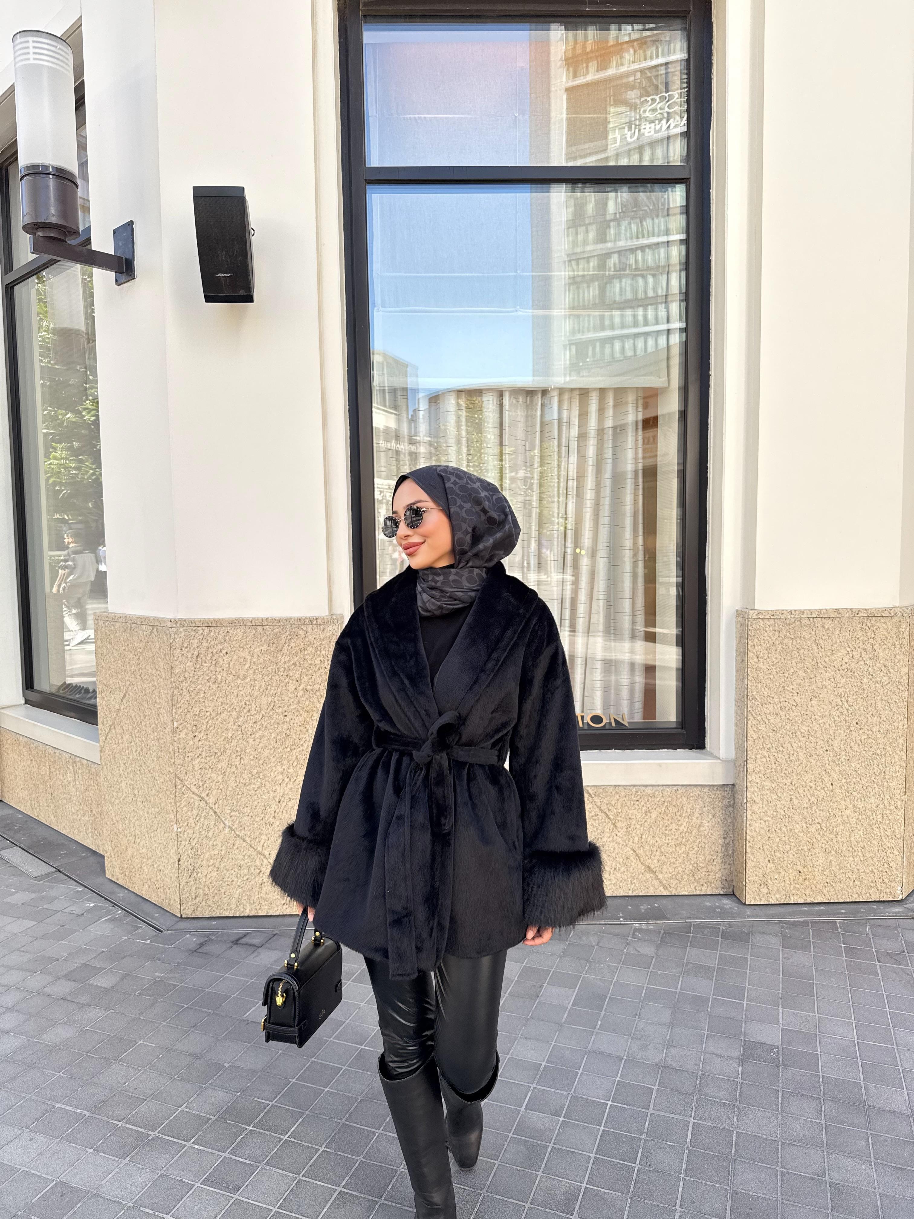 MT0169H&R ButikBereket Kürk Detaylı Kaşe Mont Siyah