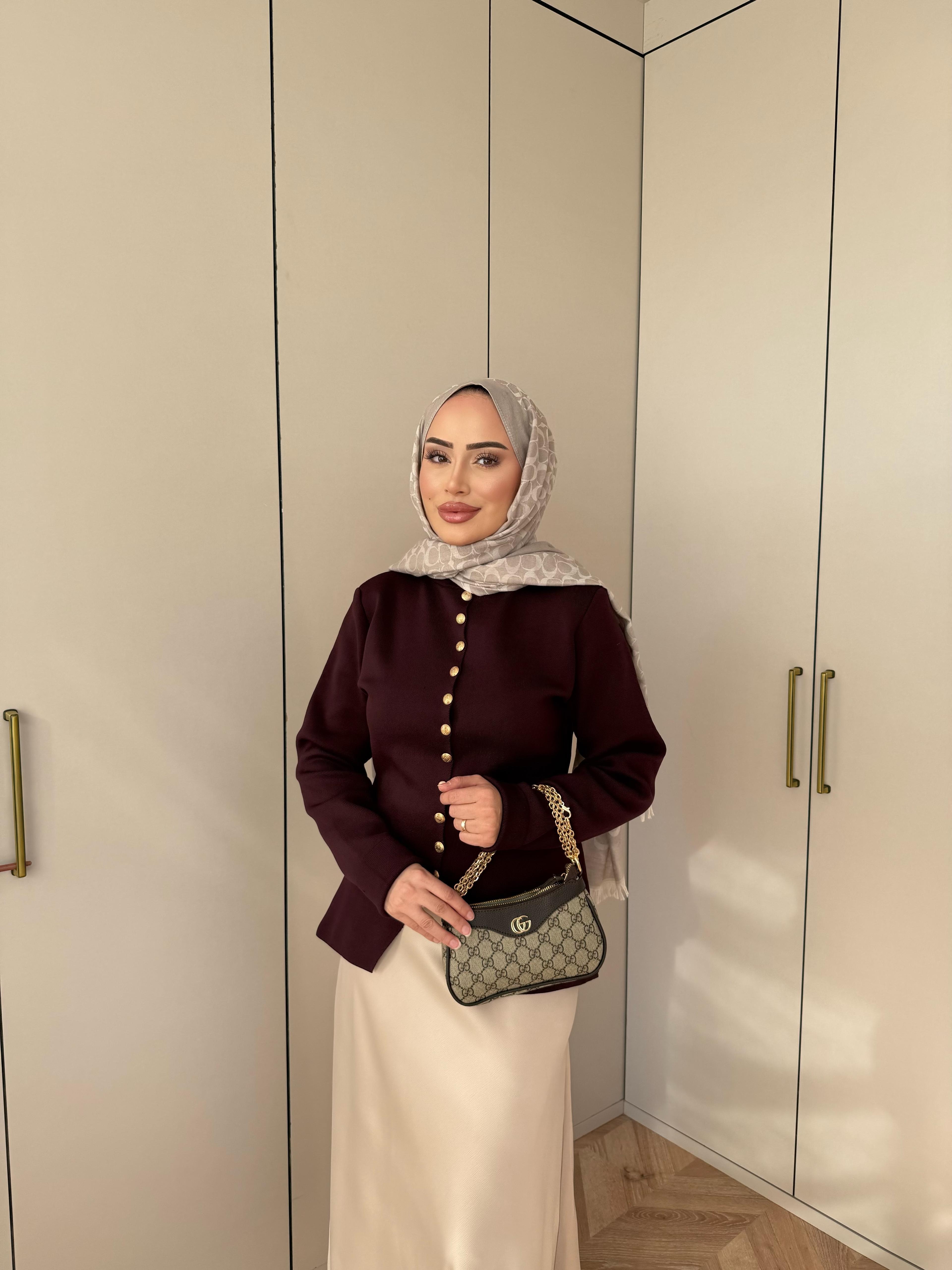 HIRKA-102H&R ButikDüğmeli Gold Çelik Örme Hırka Bordo