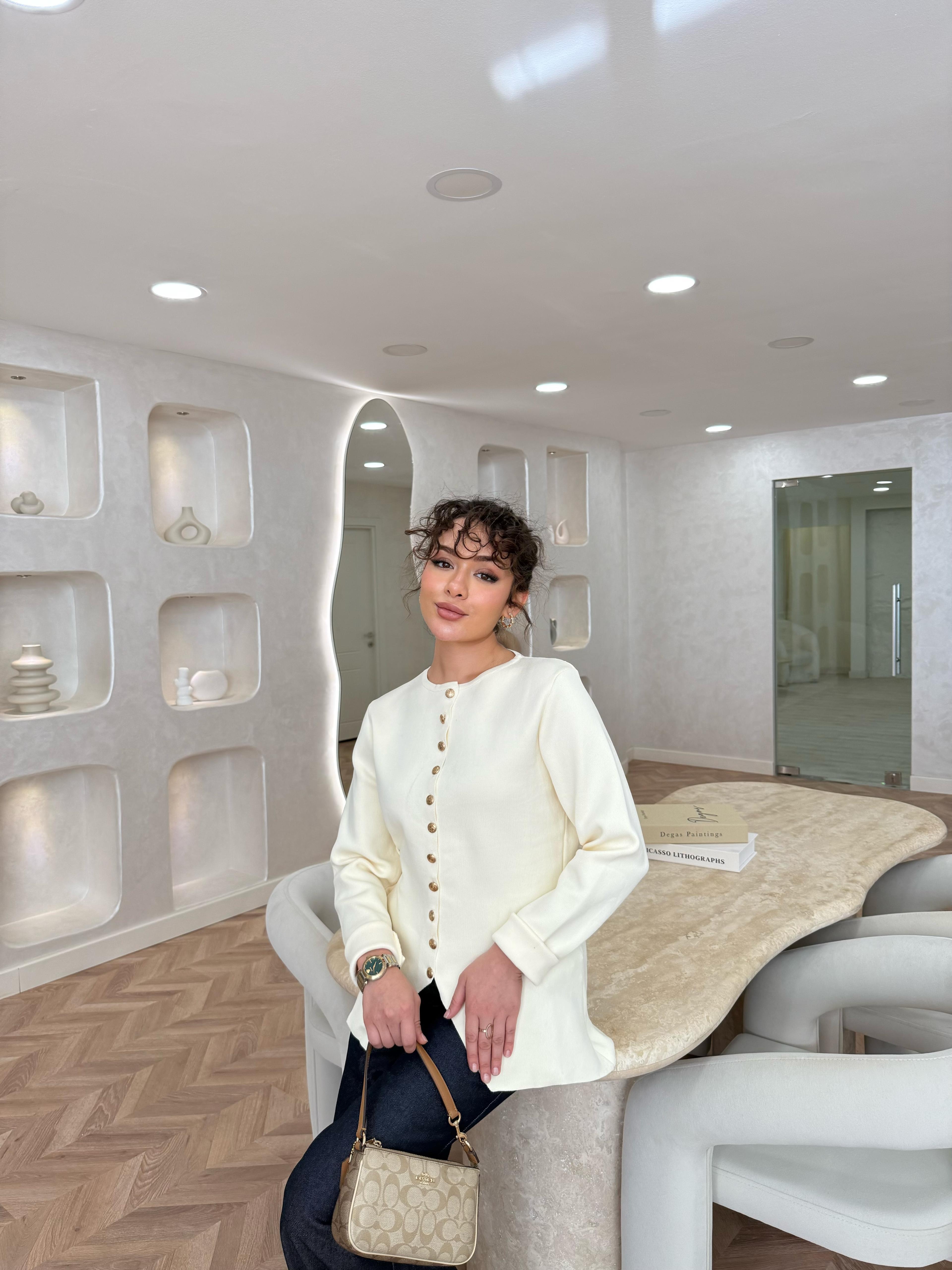 HIRKA-102H&R ButikDüğmeli Gold Çelik Örme Hırka Ekru