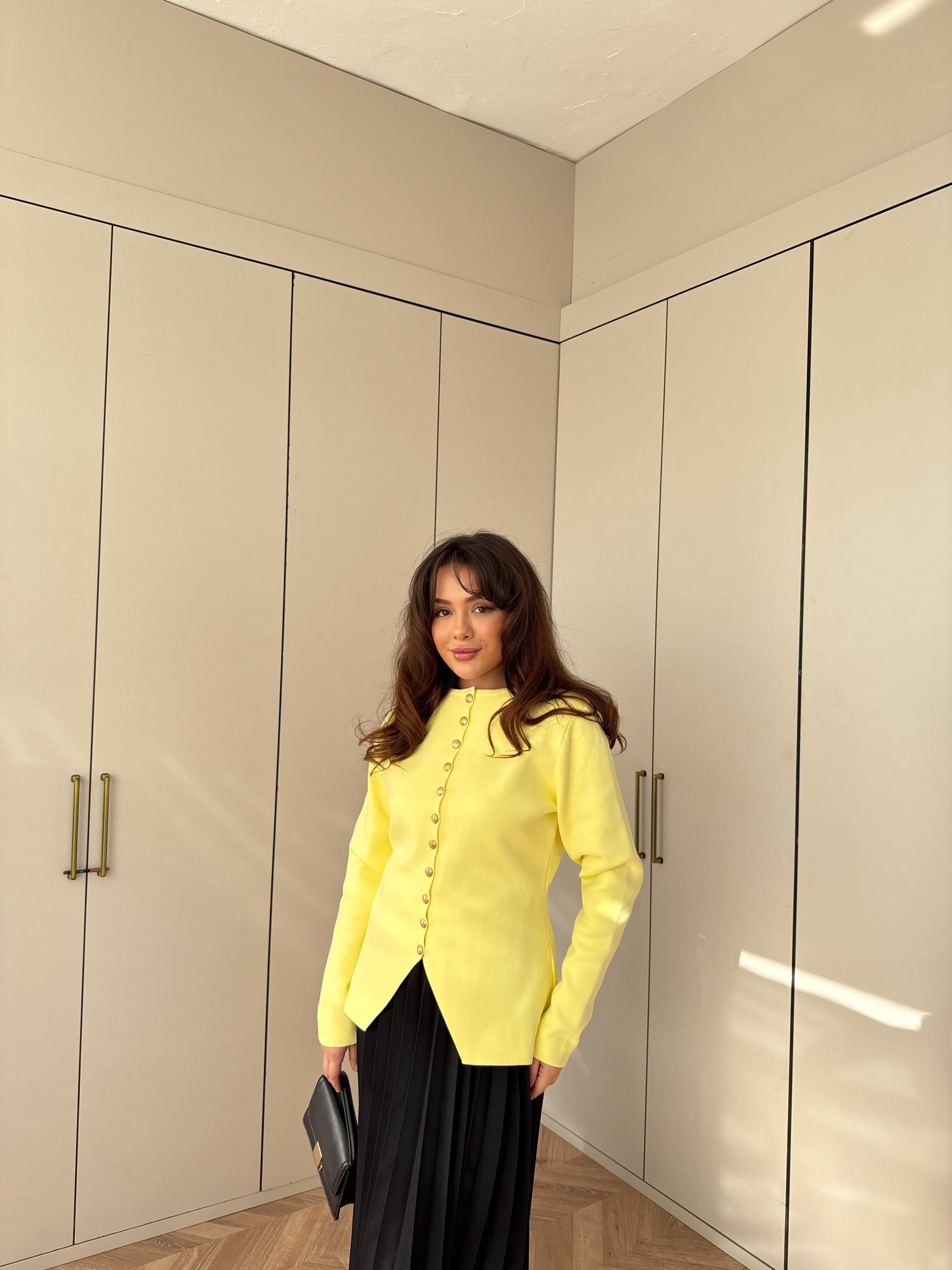 HIRKA-102H&R ButikDüğmeli Gold Çelik Örme Hırka Sarı