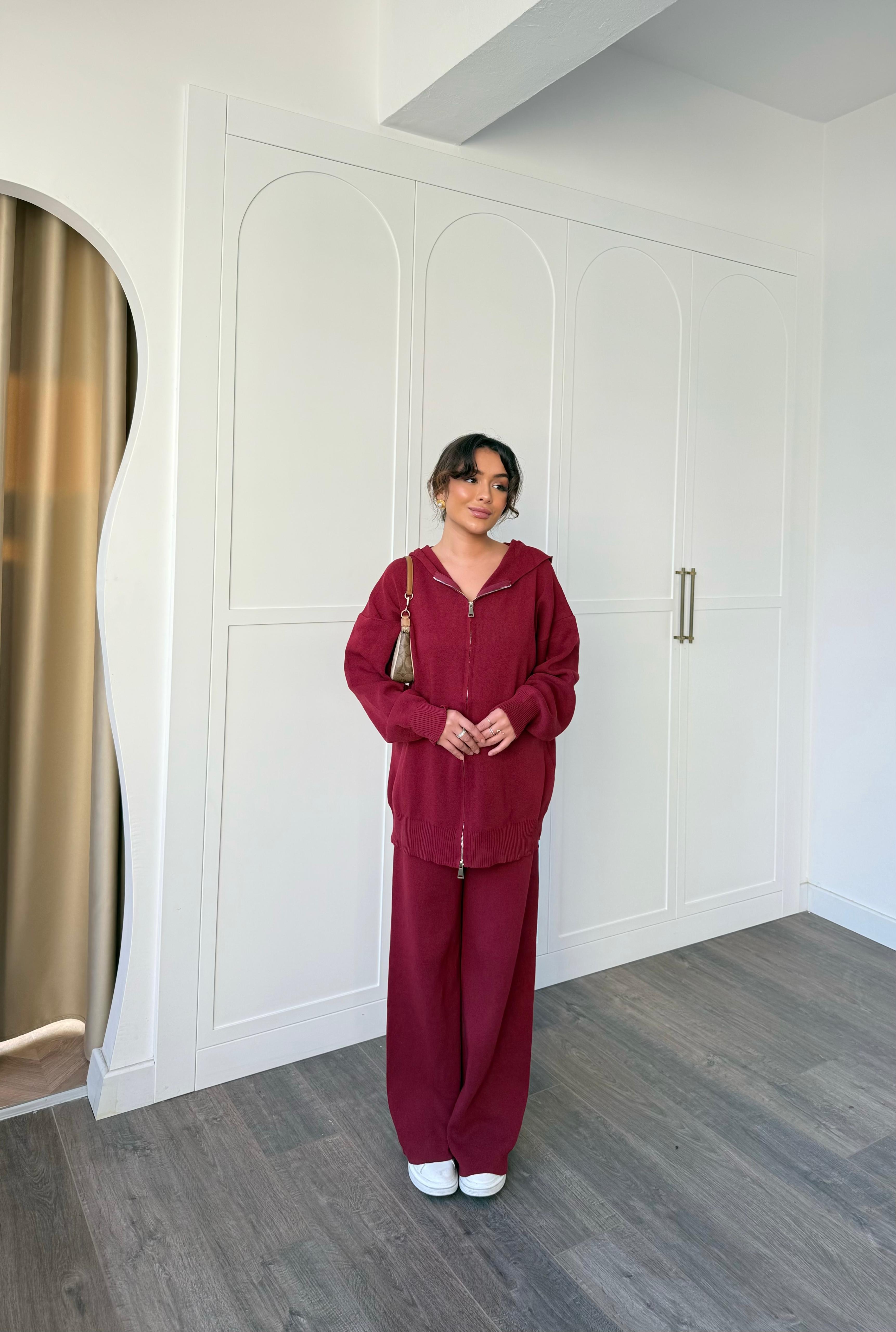 TAKM-1753H&R ButikEflin Ön Fermuarlı Triko Takım Bordo