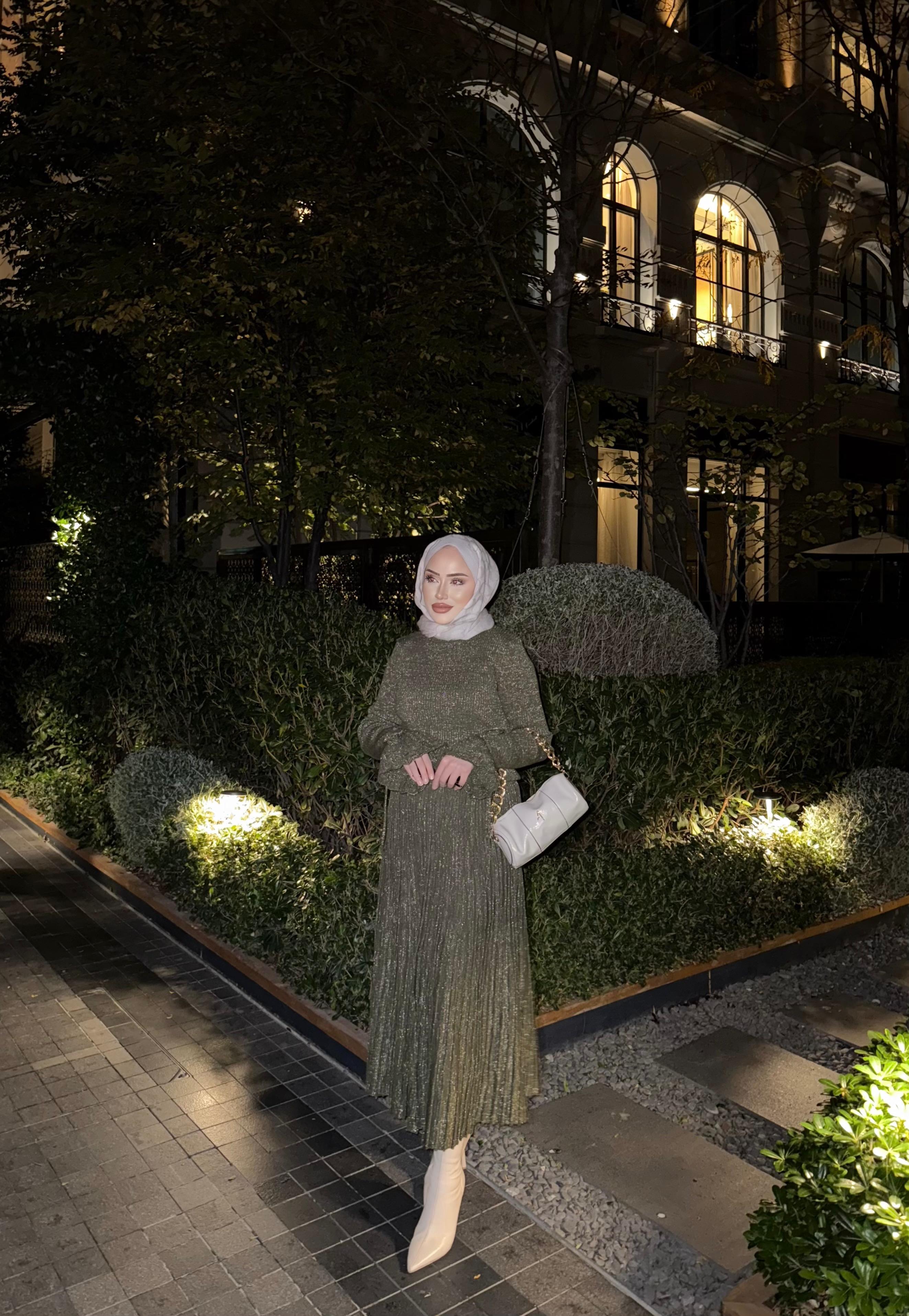 TAKM-1853H&R ButikElas Simli Etekli Takım Haki
