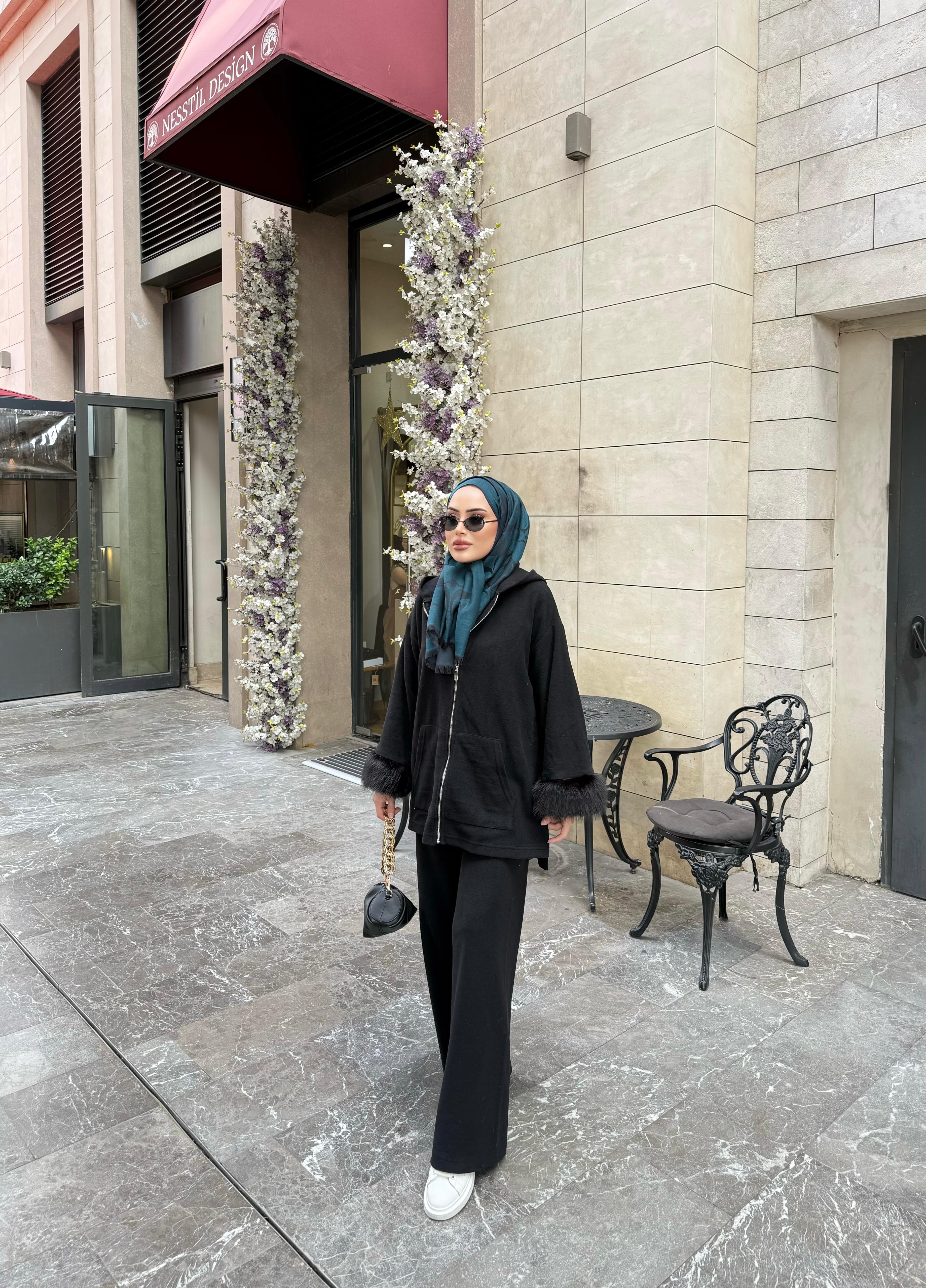 TAKM-1850H&R ButikElo Kolu Kürklü Takım Siyah