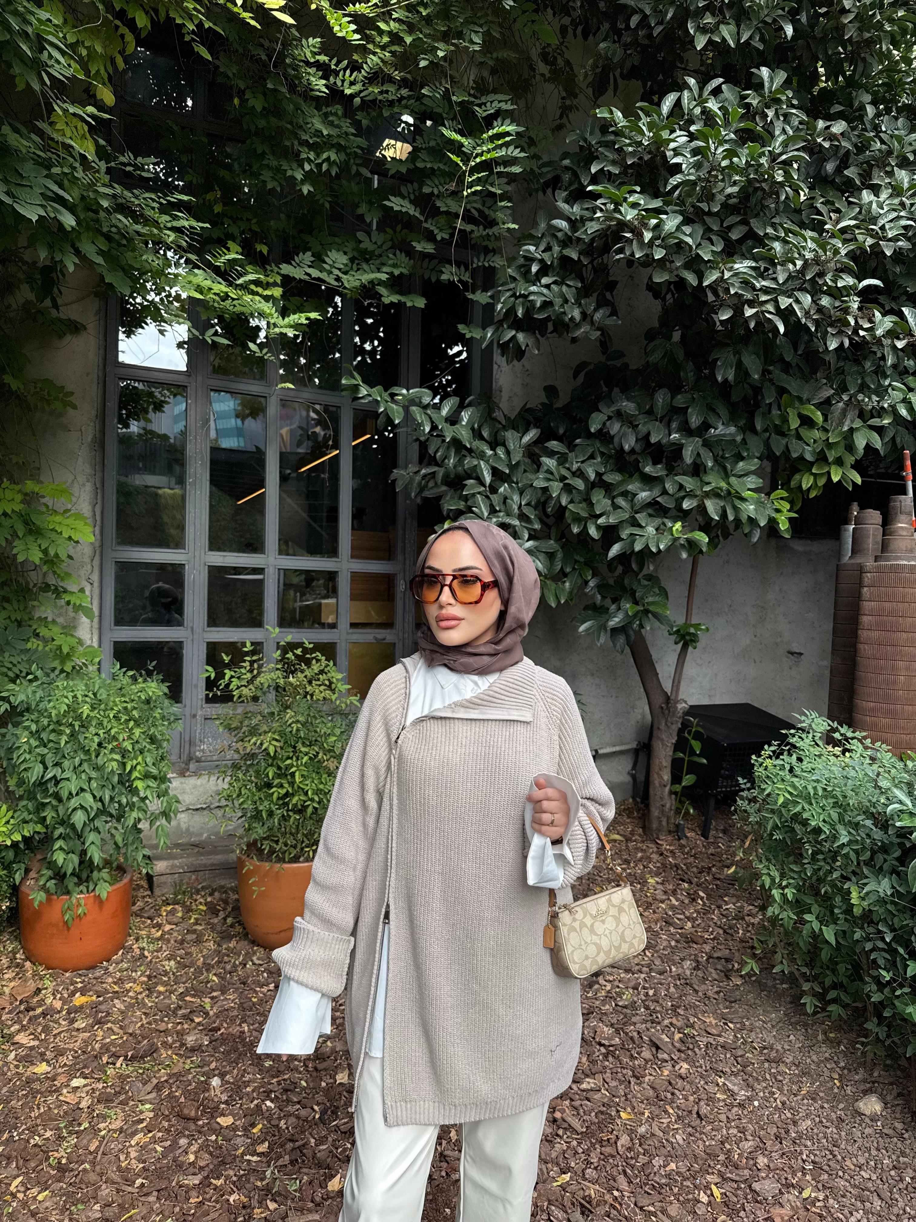 KAZK-582H&R ButikEmma Fermuarlı Kazak Bej