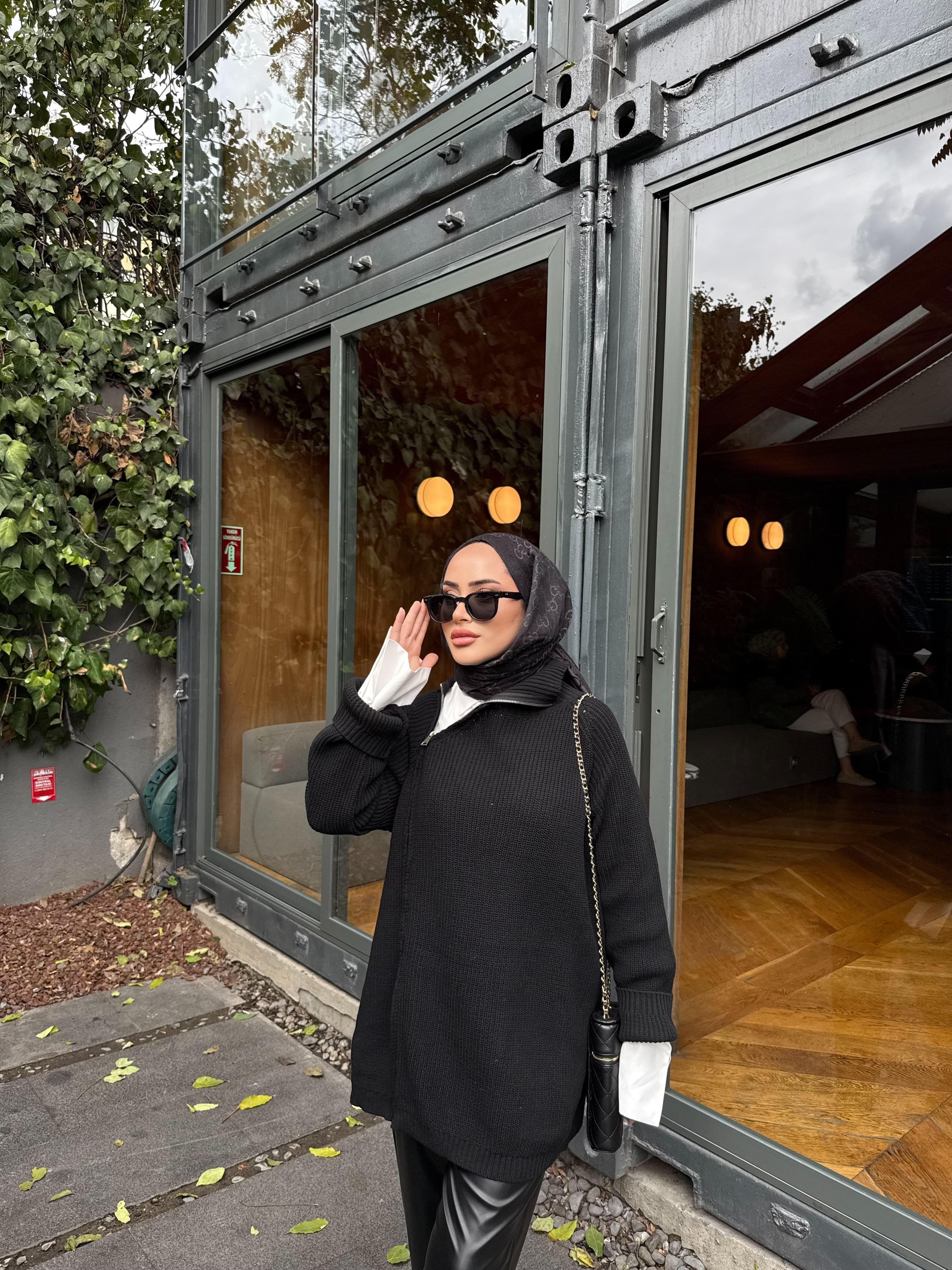 KAZK-580H&R ButikEmma Fermuarlı Kazak Siyah