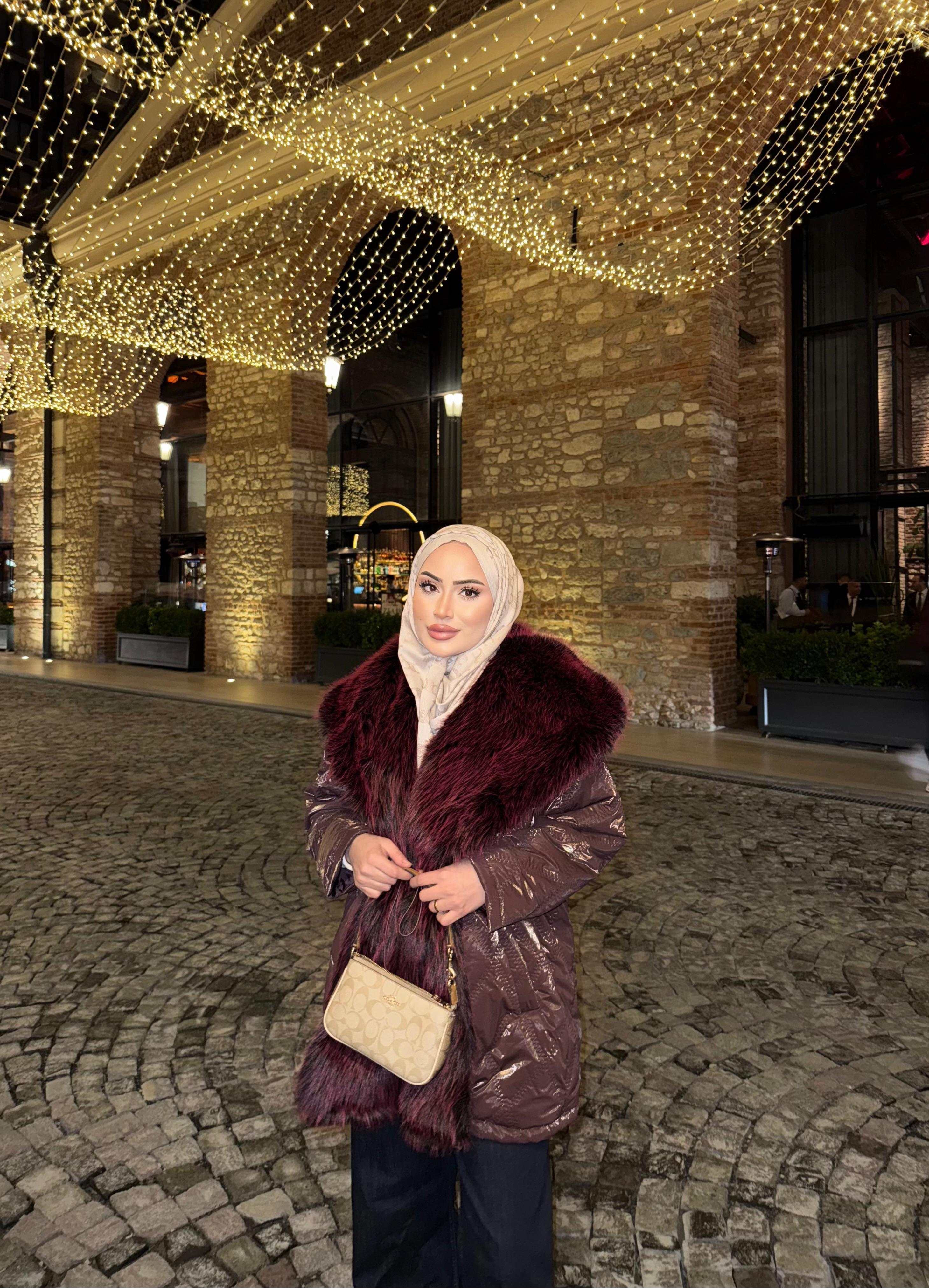 Enna Kürk Detaylı Kapitone Mont Bordo