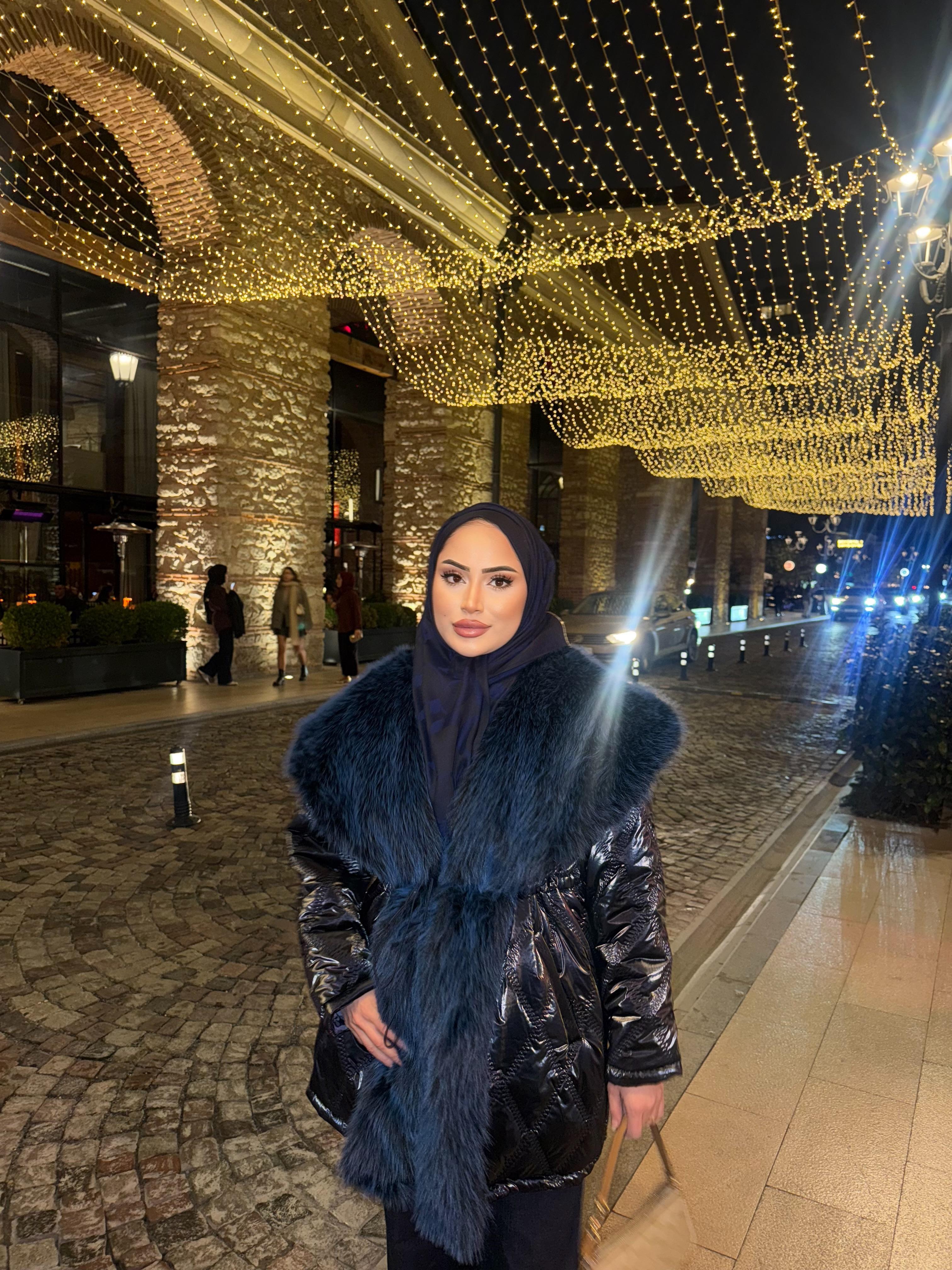 Enna Kürk Detaylı Kapitone Mont Lacivert