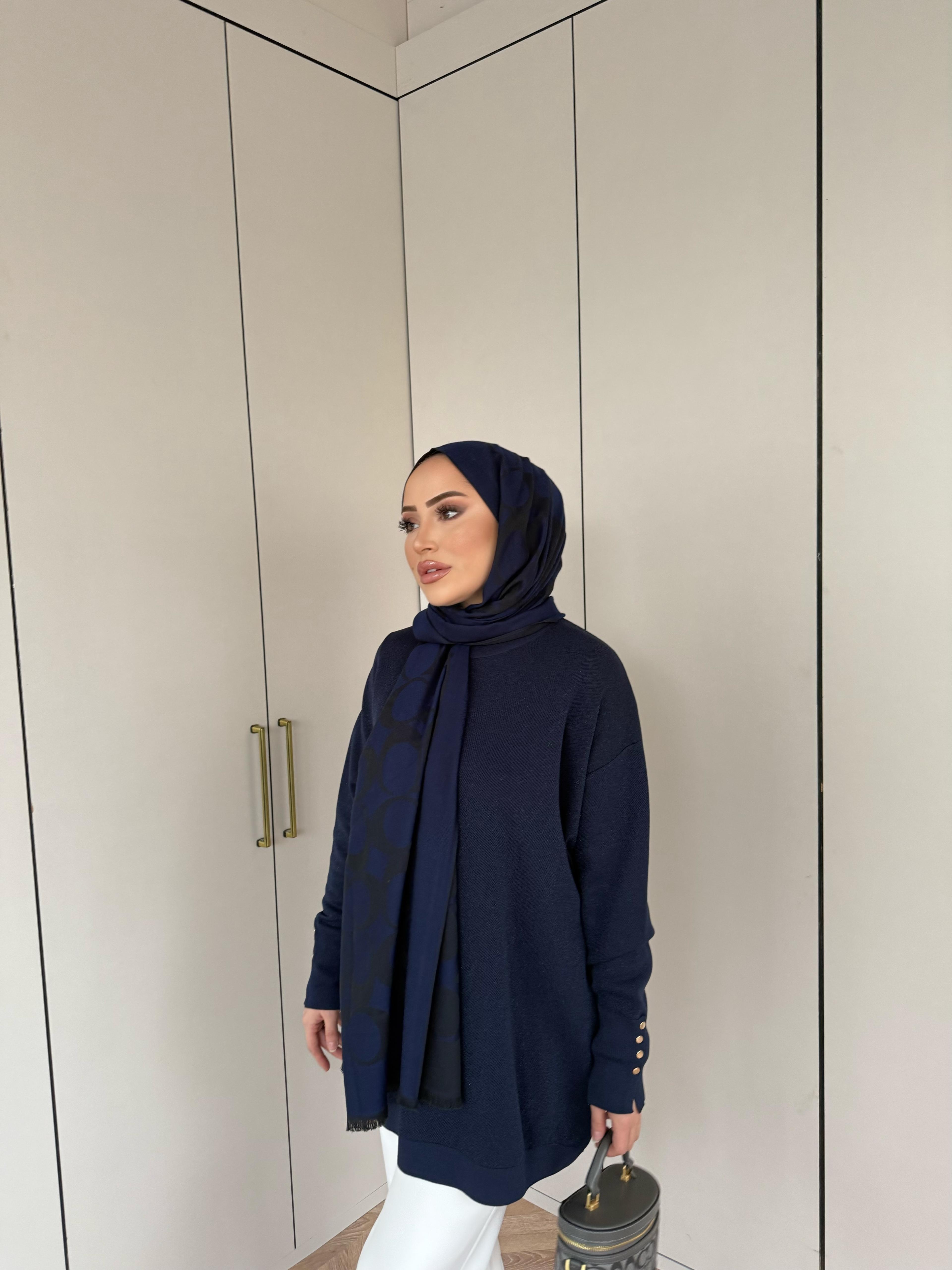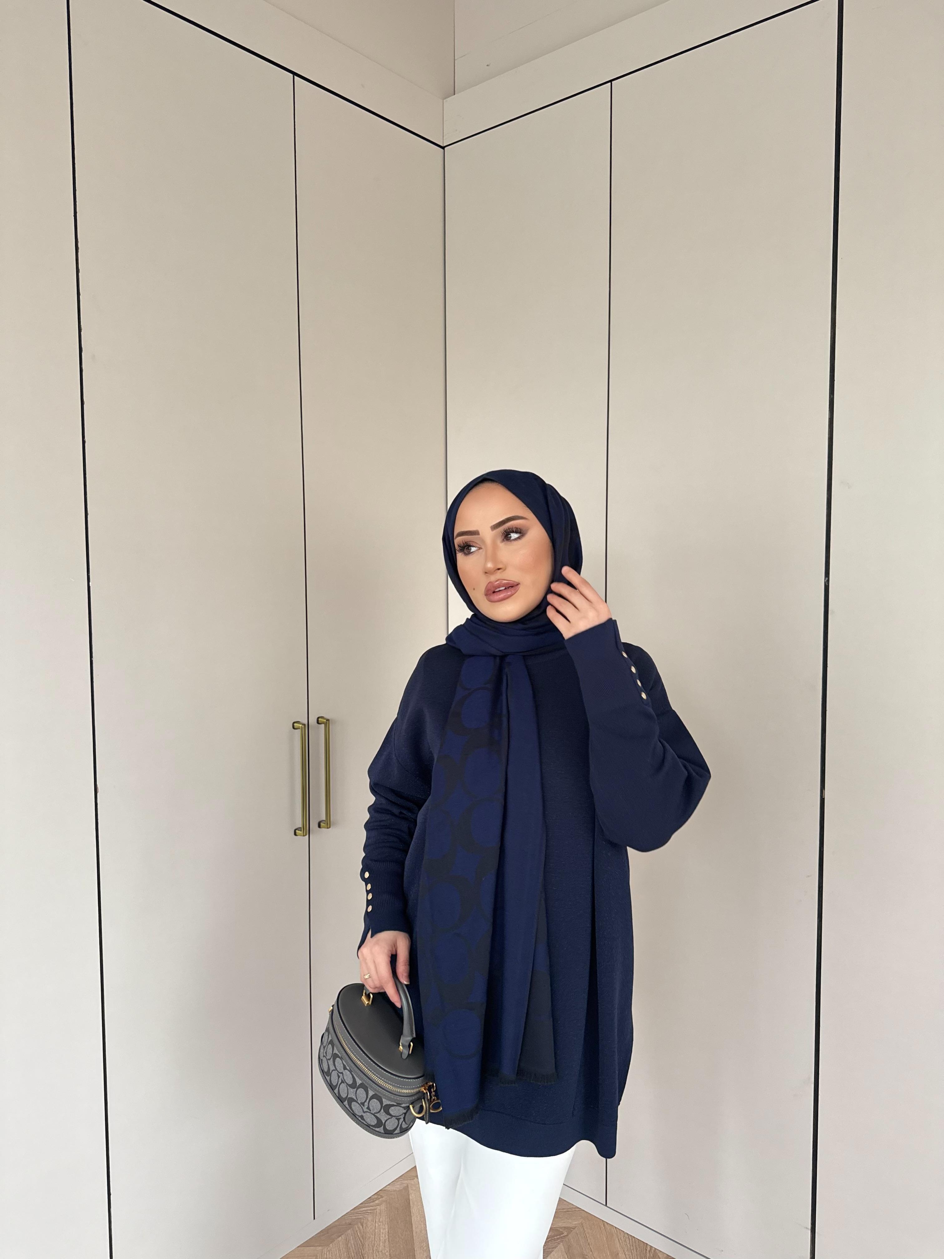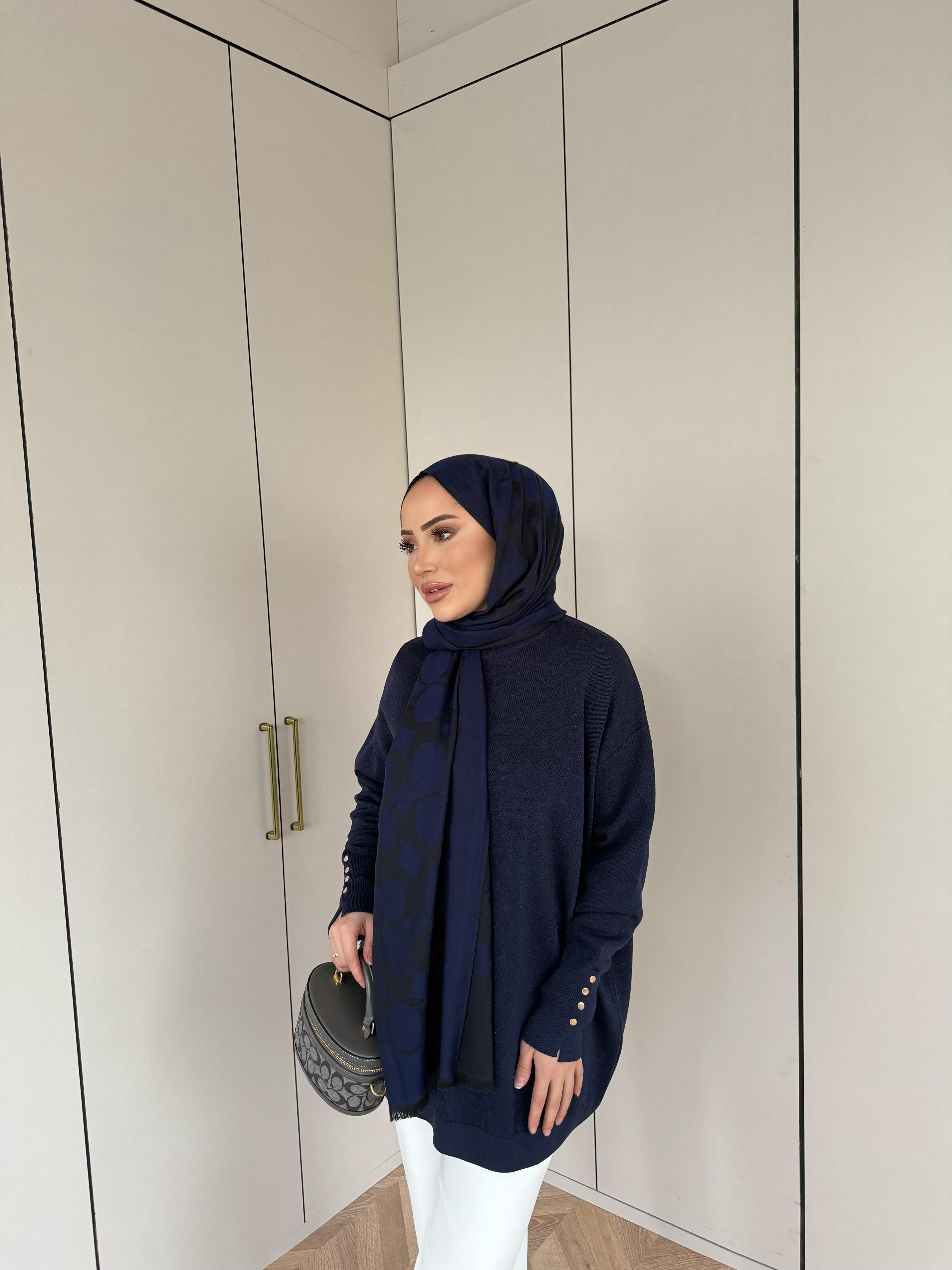 Esan Simli Kolu Düğmeli Triko Kazak Lacivert