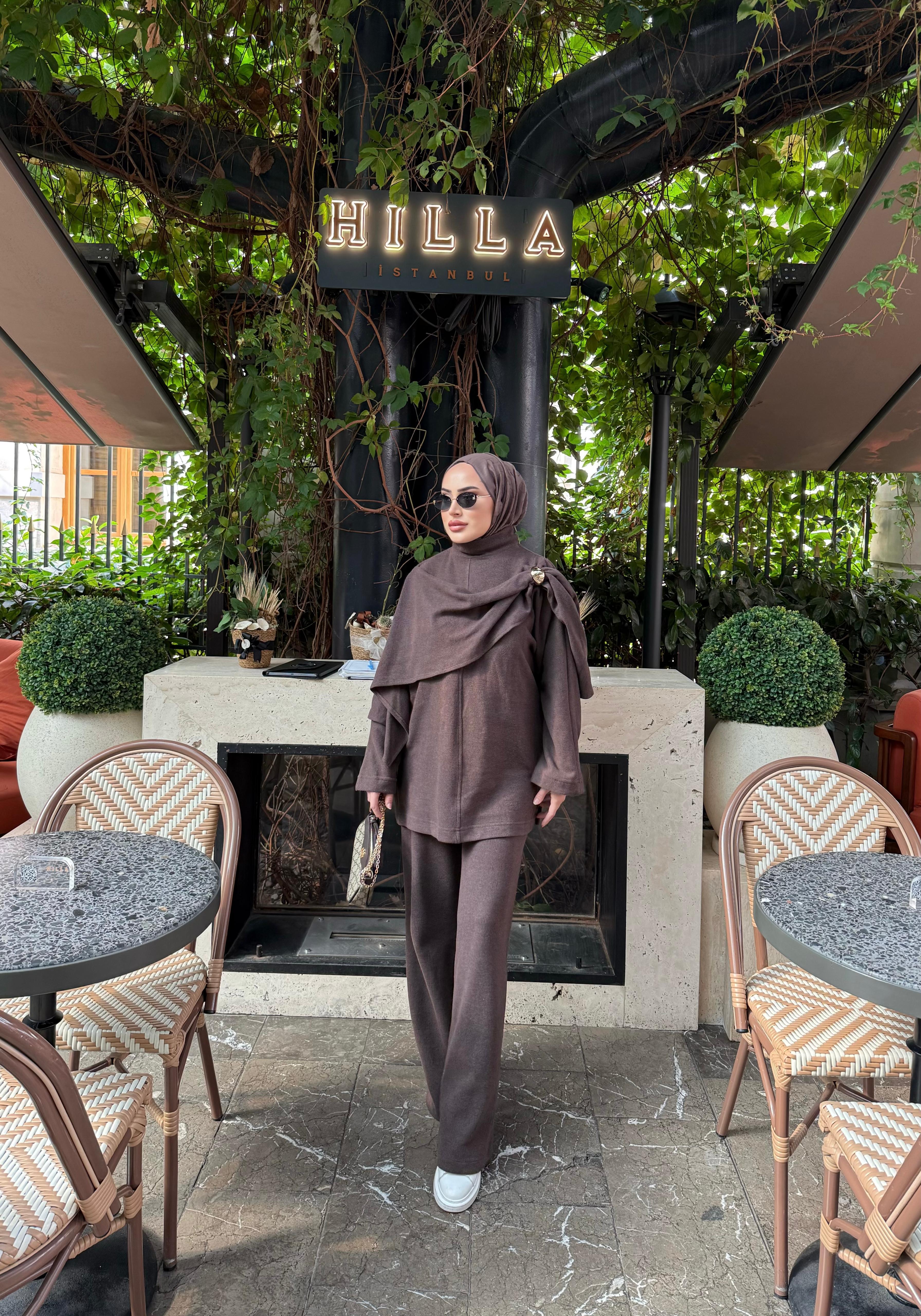 TAKM-1840H&R ButikEşnar Omuz Detaylı Takım Kahve