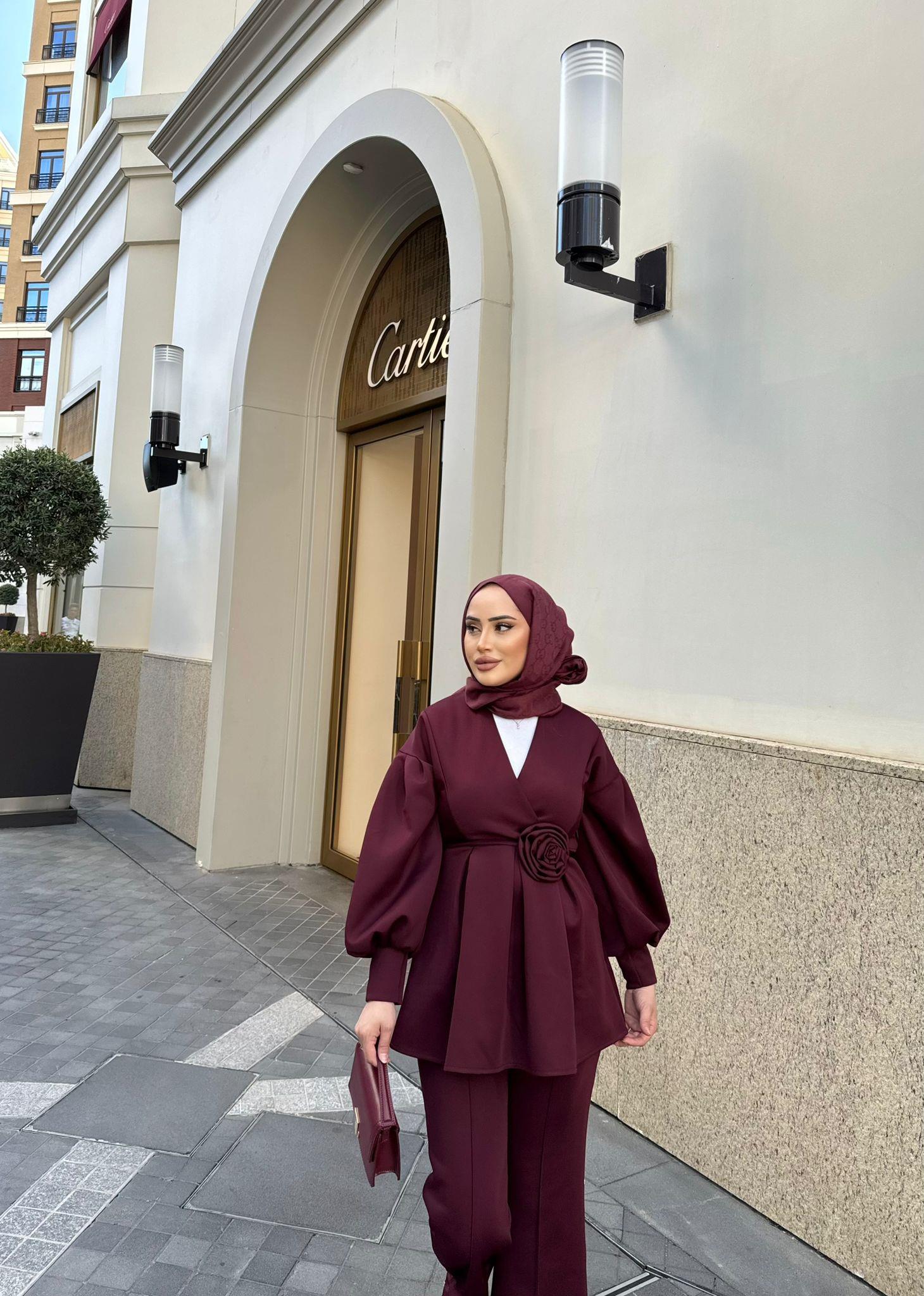 TAKM-1600H&R ButikEssa Gül Detaylı Scuba Takım Bordo