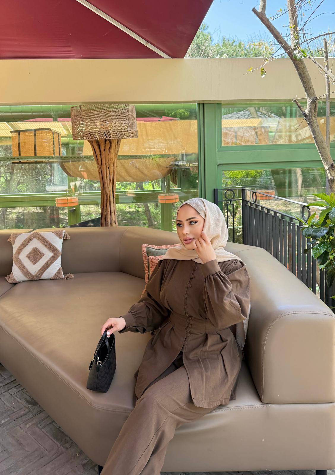 TAKM-1516H&R ButikEssa Ön Düğmeli Keten Takım Kahve