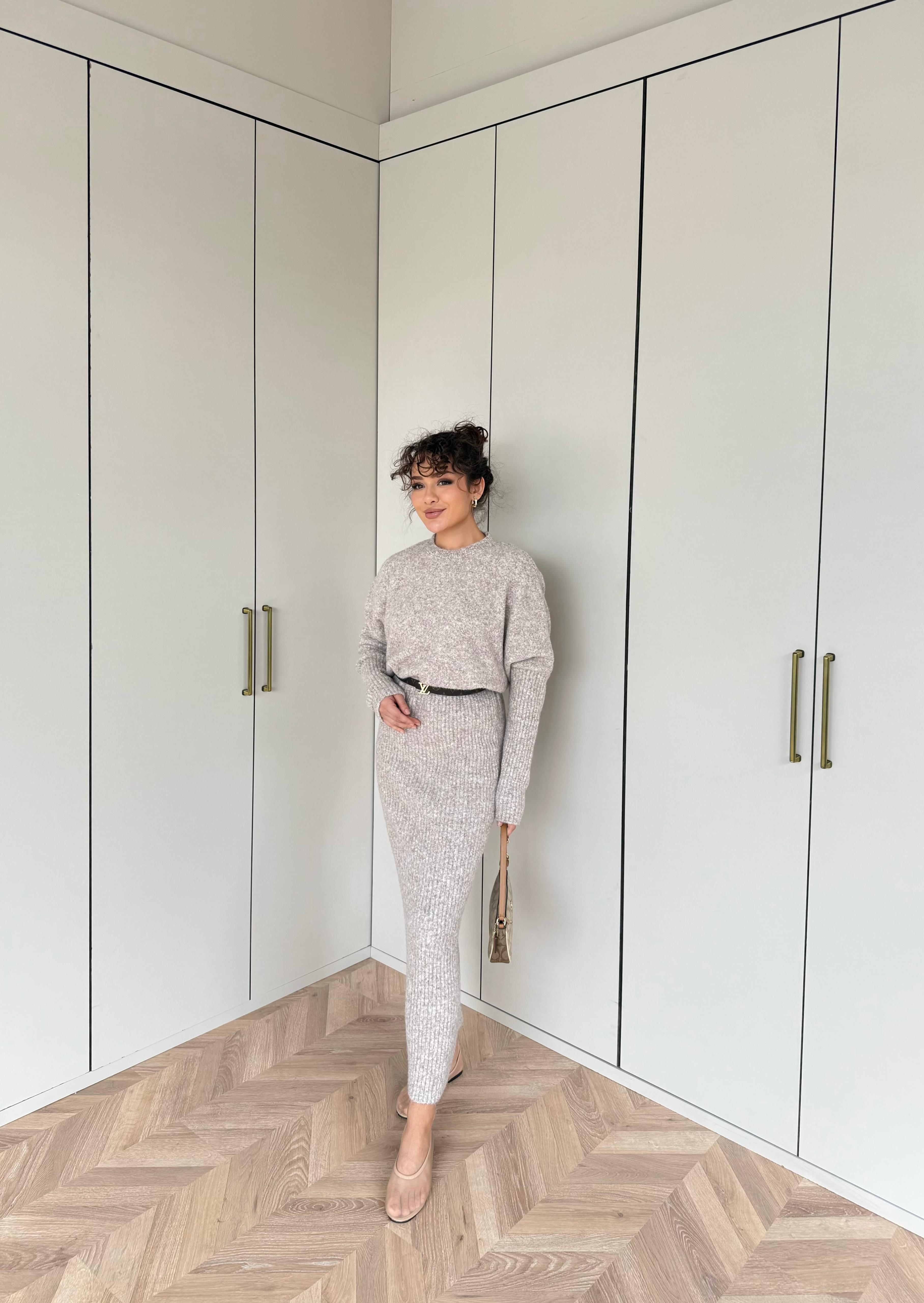 Etekli Takım Görünümlü Elbise Vizon