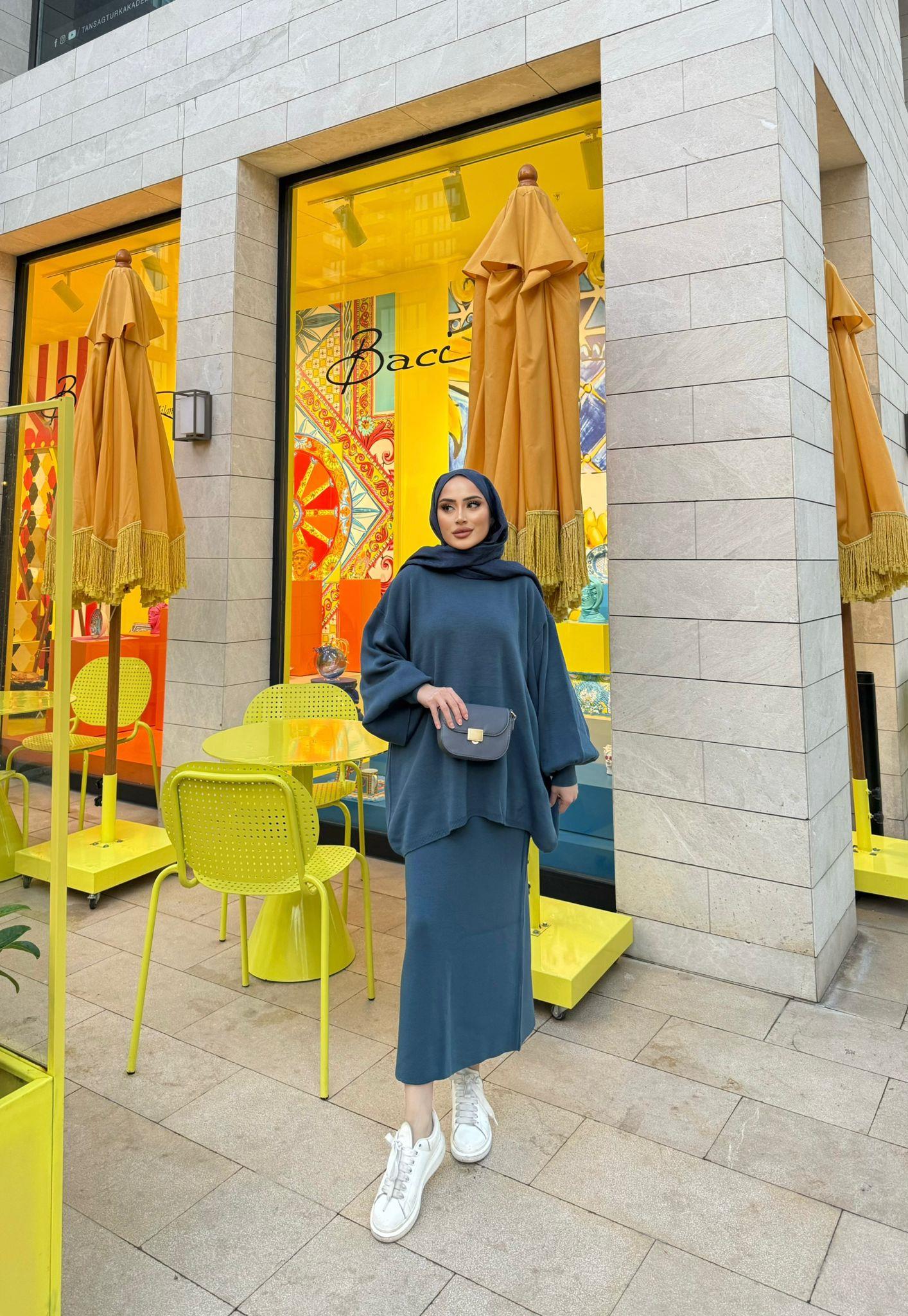 Eylül Balon Kol Etekli Takım İndigo Mavi