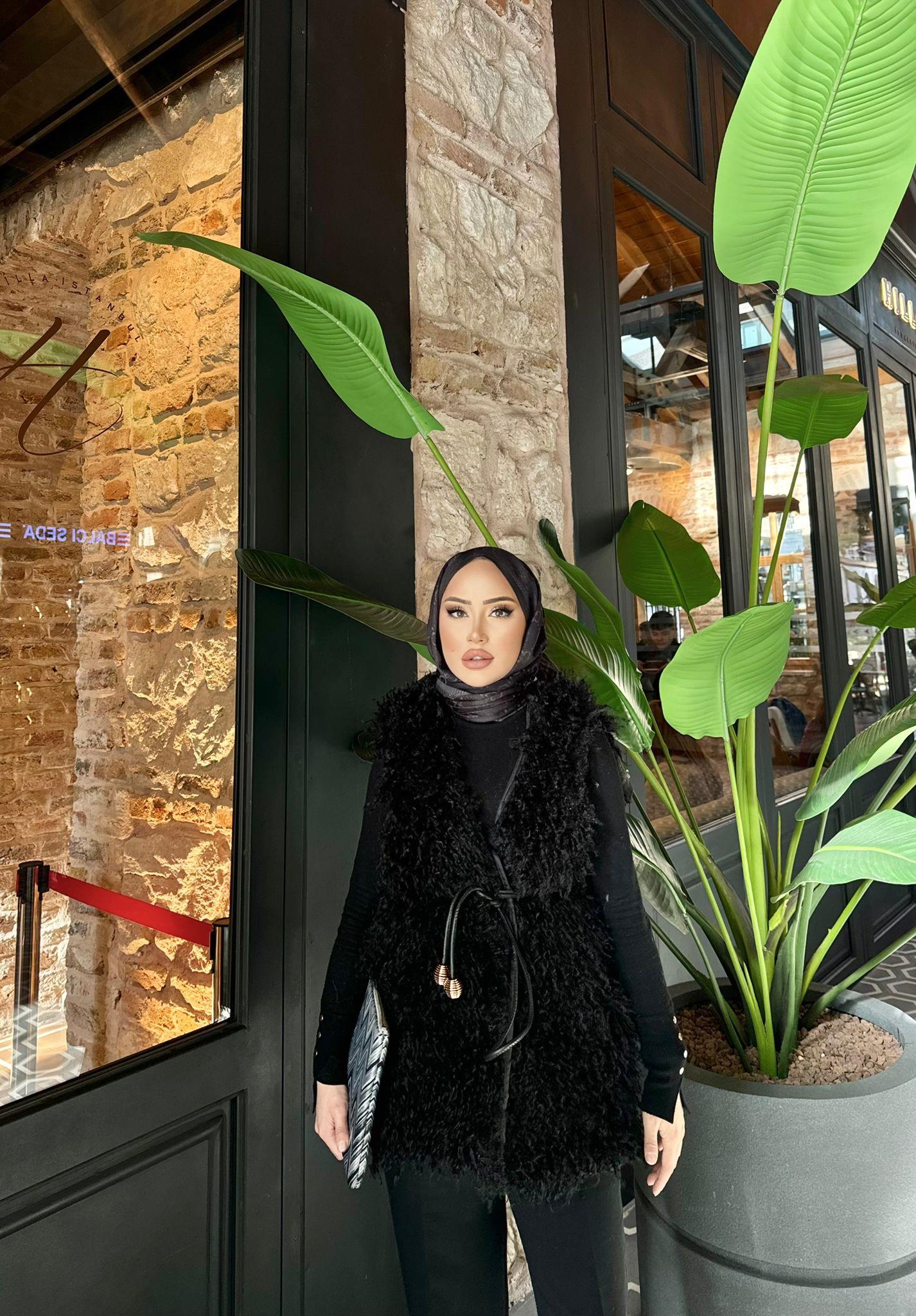 YELEK-264H&R ButikFila Tüylü Yelek Siyah