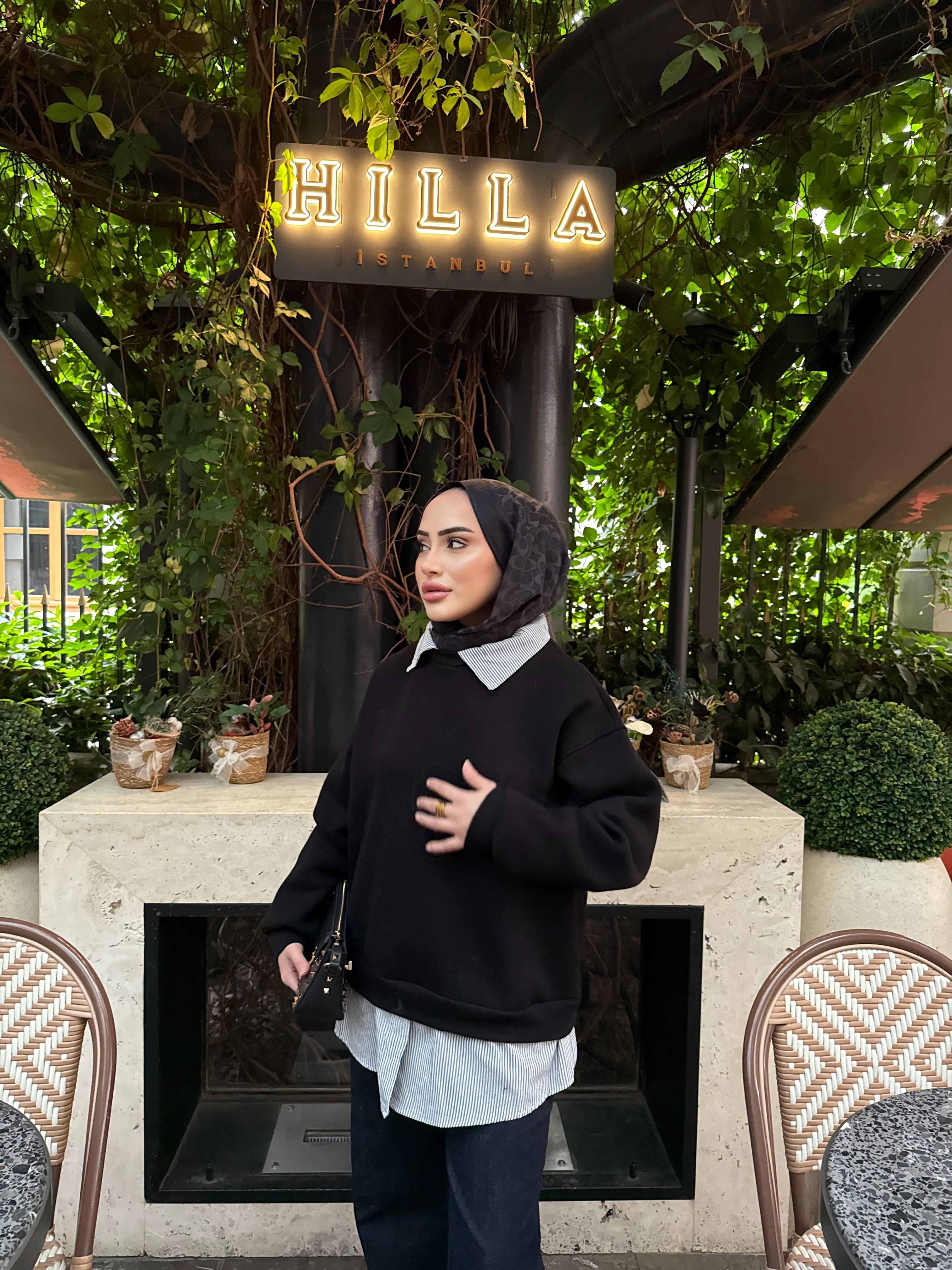 Sweat-191H&R ButikGömlek Detaylı 3 İplik Sweat Siyah