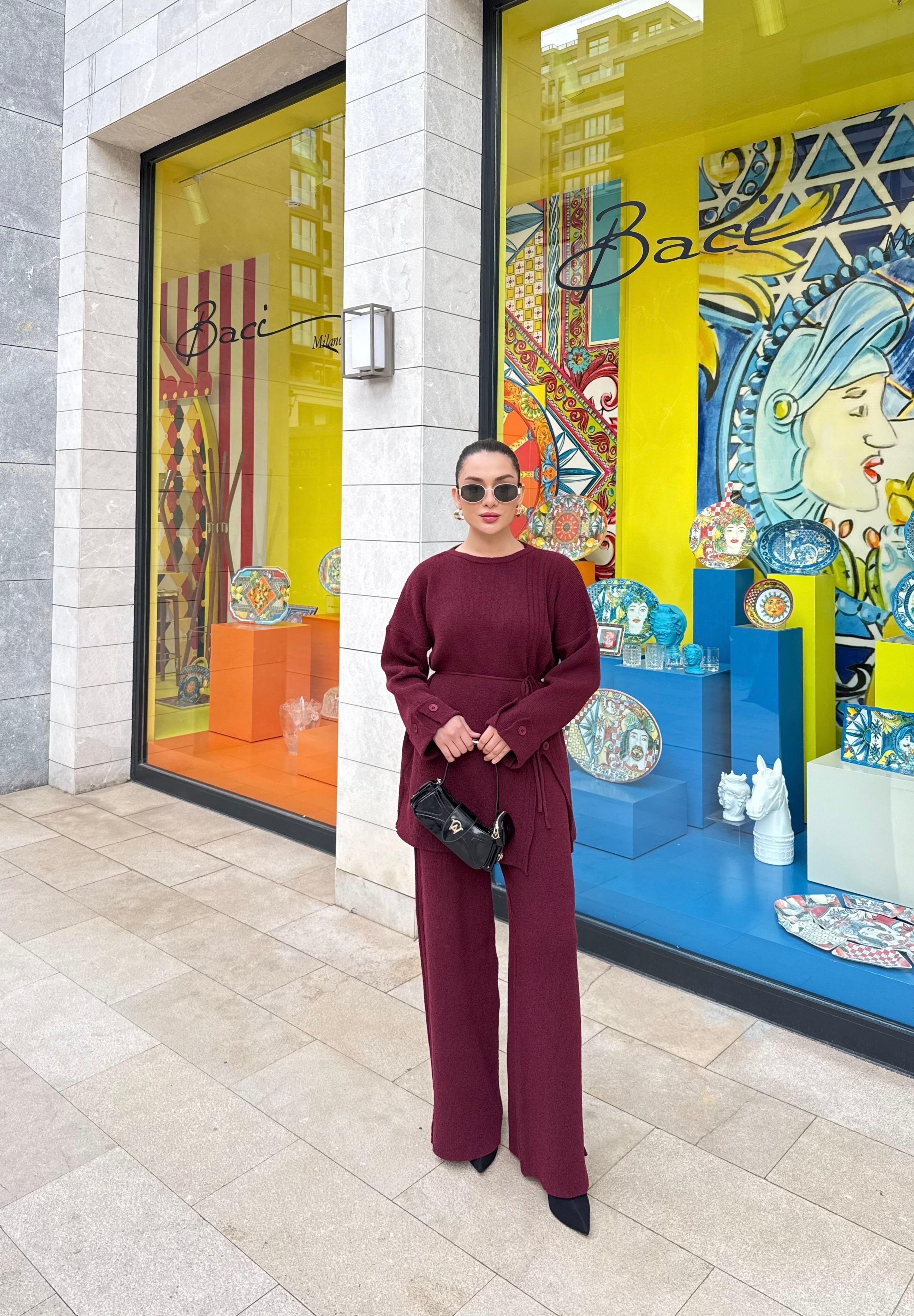 TAKM-1804H&R ButikHaydie Yan Düğmeli Triko Takım Bordo