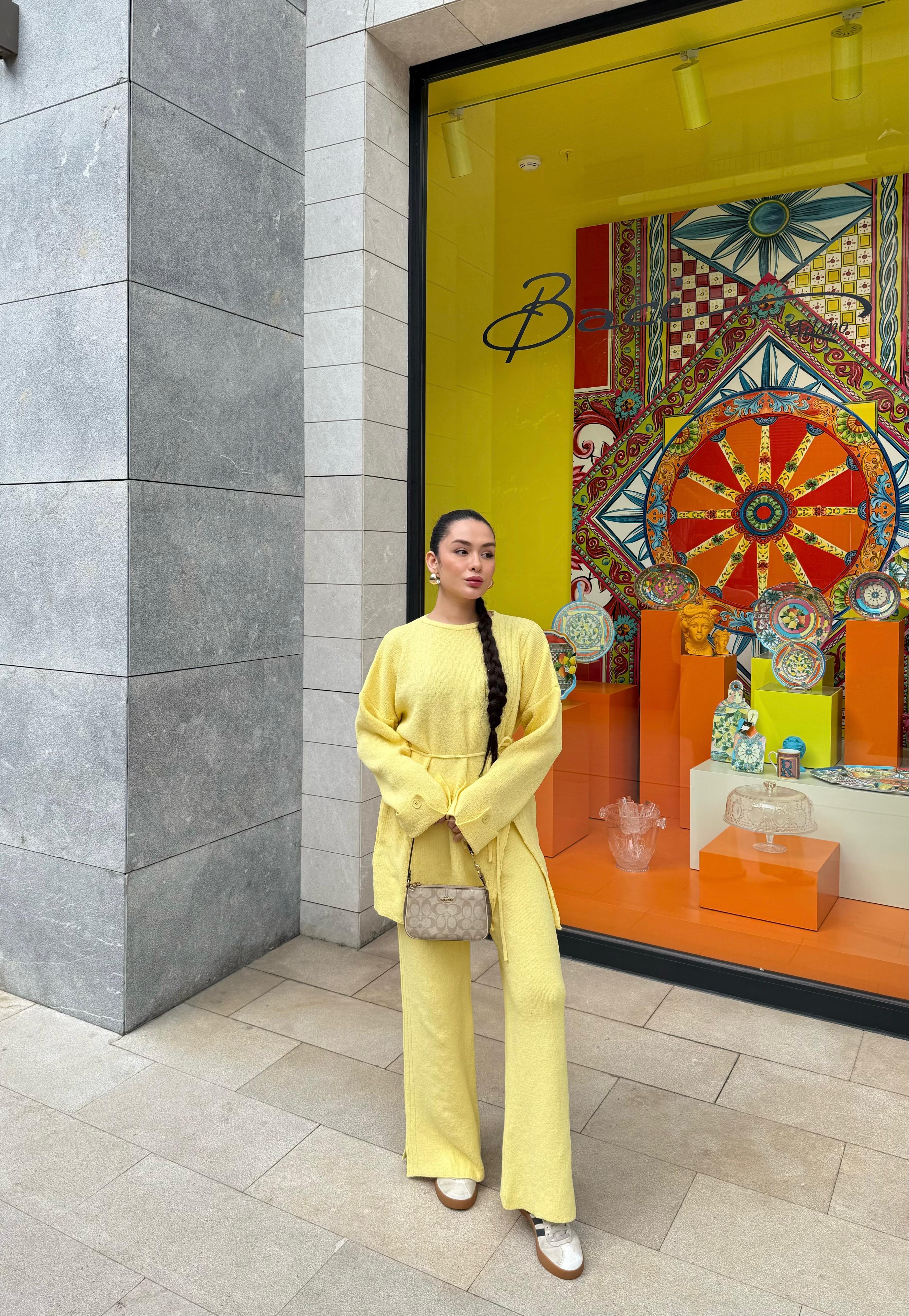 TAKM-1800H&R ButikHaydie Yan Düğmeli Triko Takım Sarı