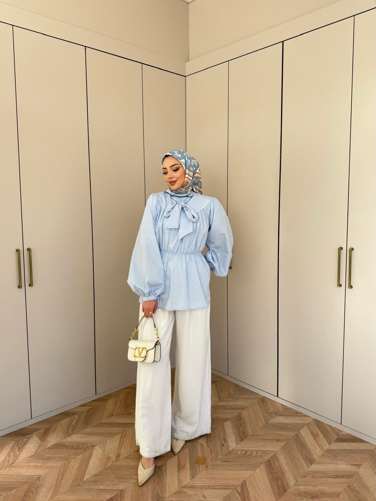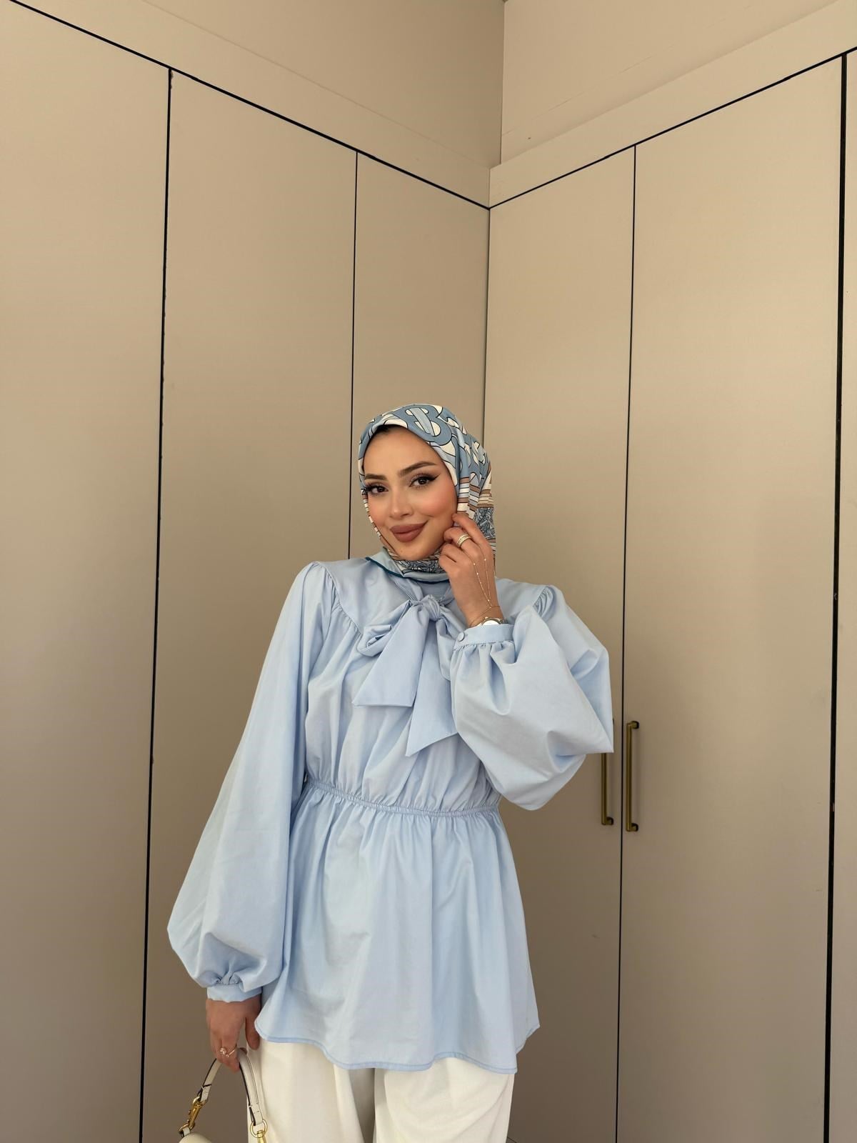 Hen-Aslı Ön Bağlamalı Gömlek Bebe Mavi