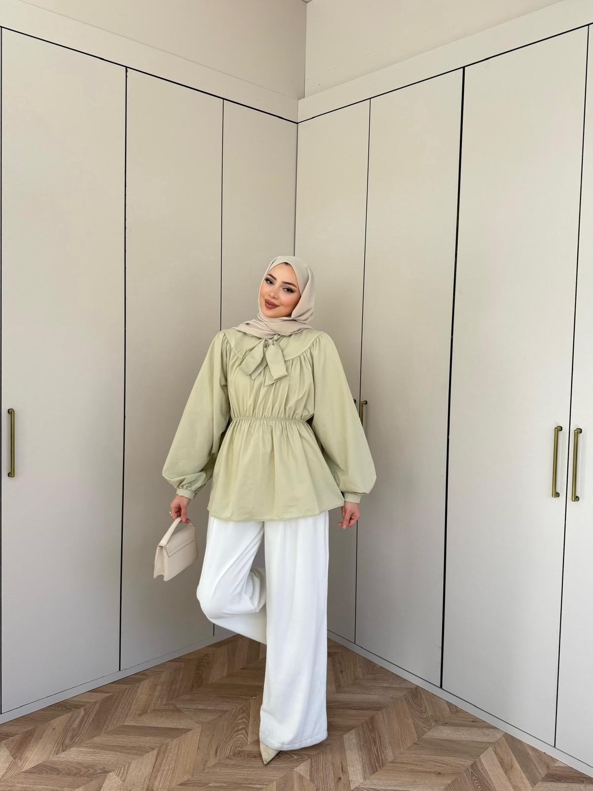 Hen-Aslı Ön Bağlamalı Gömlek Çağla Yeşili