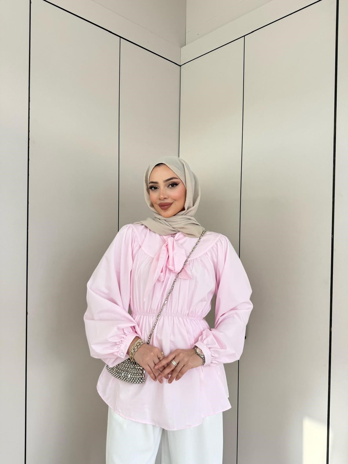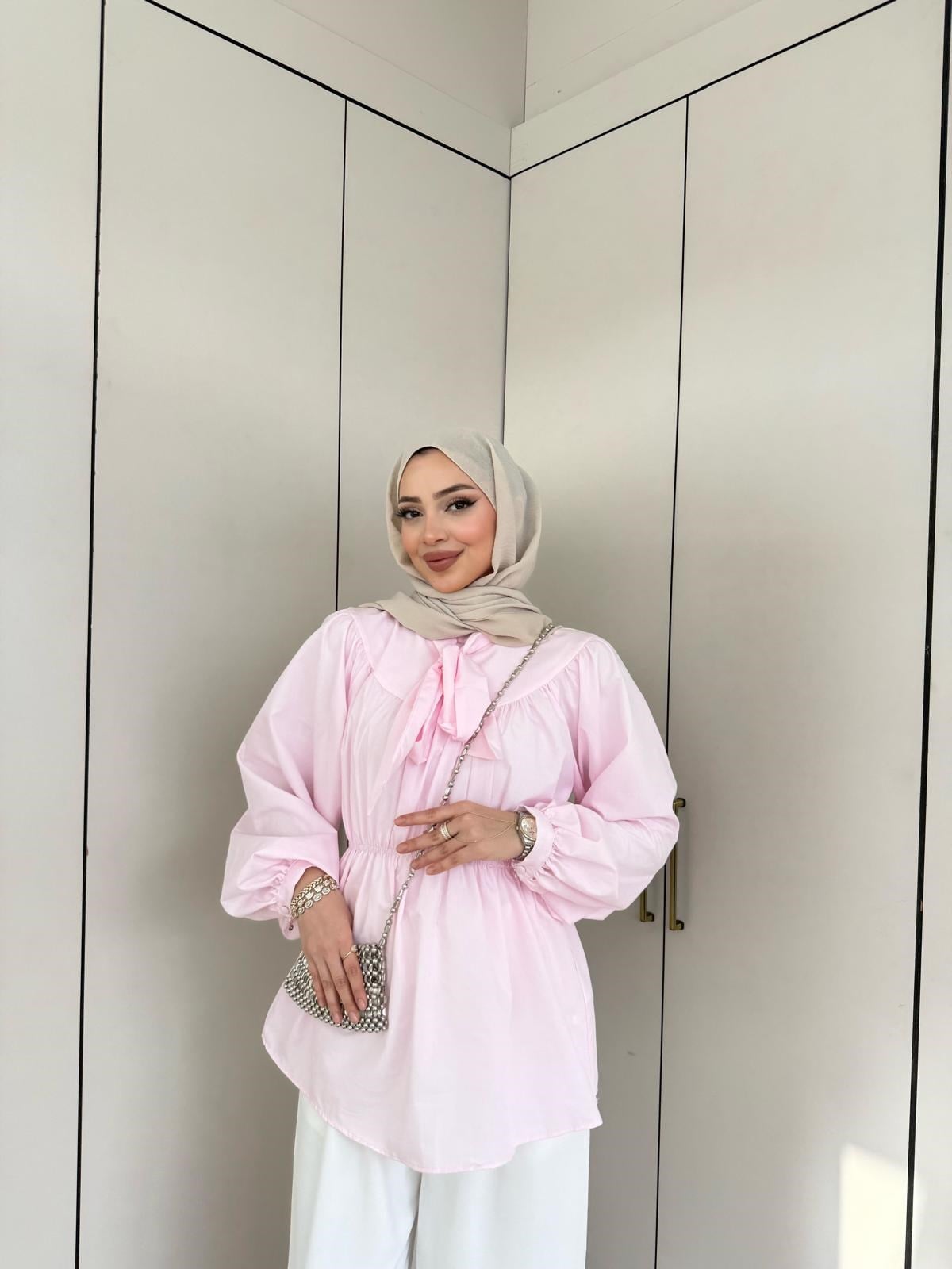 Hen-Aslı Ön Bağlamalı Gömlek Pembe