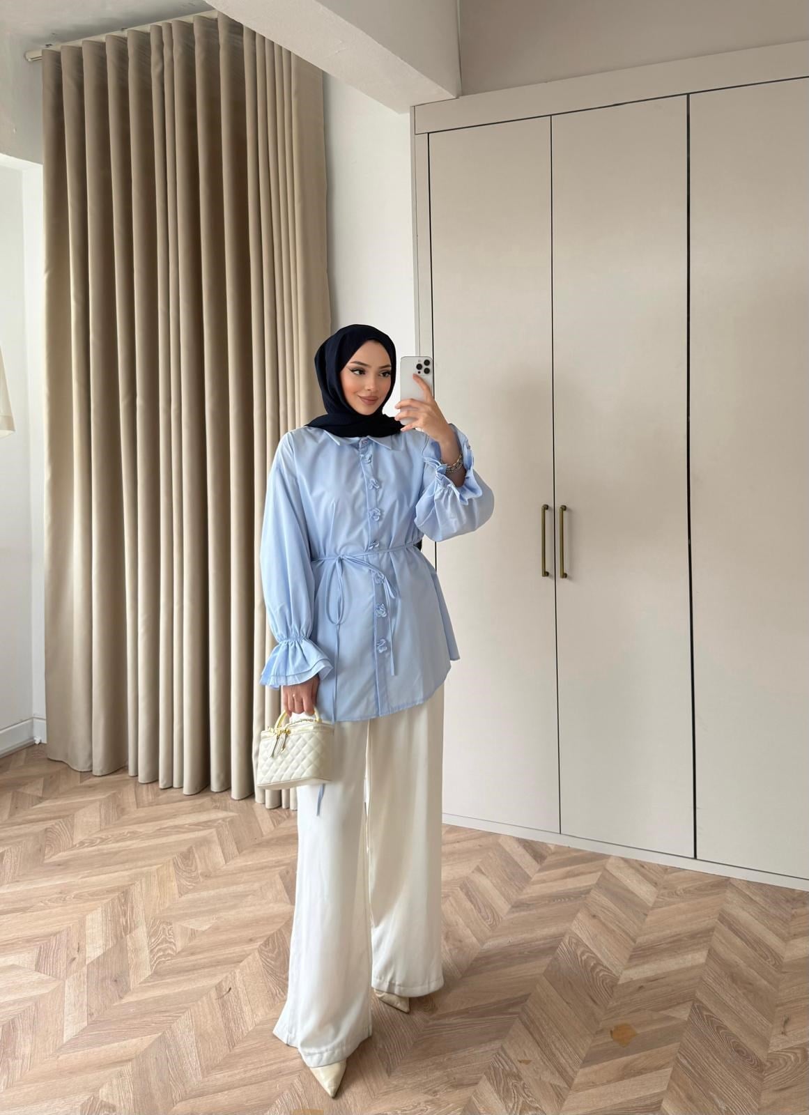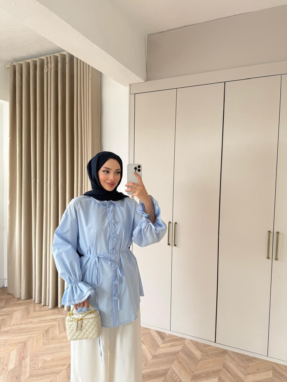 Hen- Büşi Ön Çiçekli Gömlek Bebe Mavi