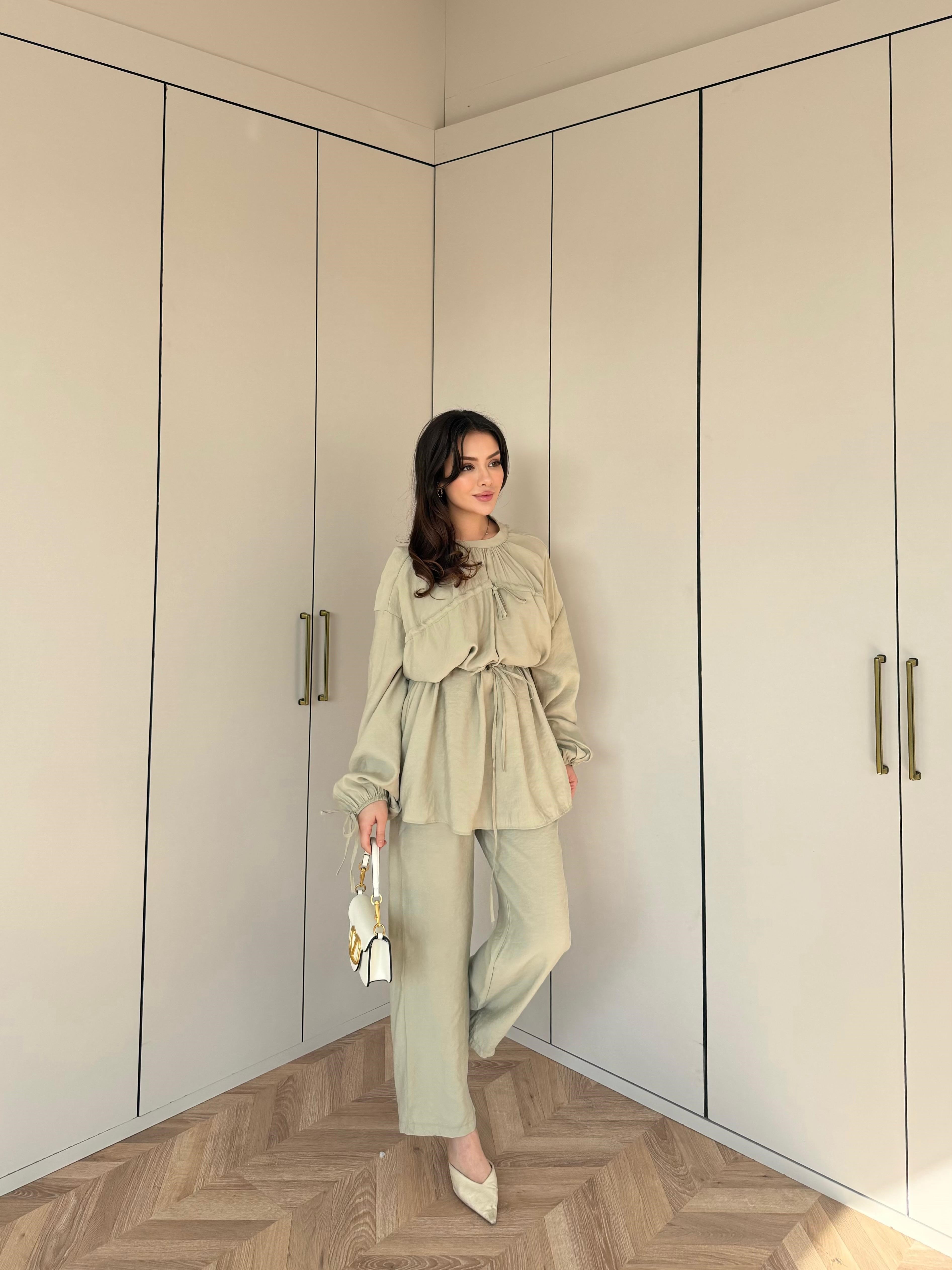 Hen416650-Qulas Ön Bağlamalı Modal Takım Küf Yeşili