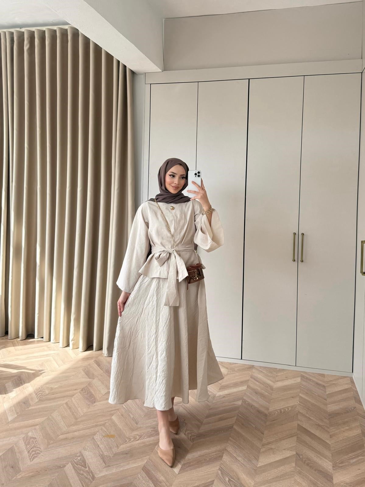 Hew- Ala Bağlamalı Etekli Takım Taş Rengi