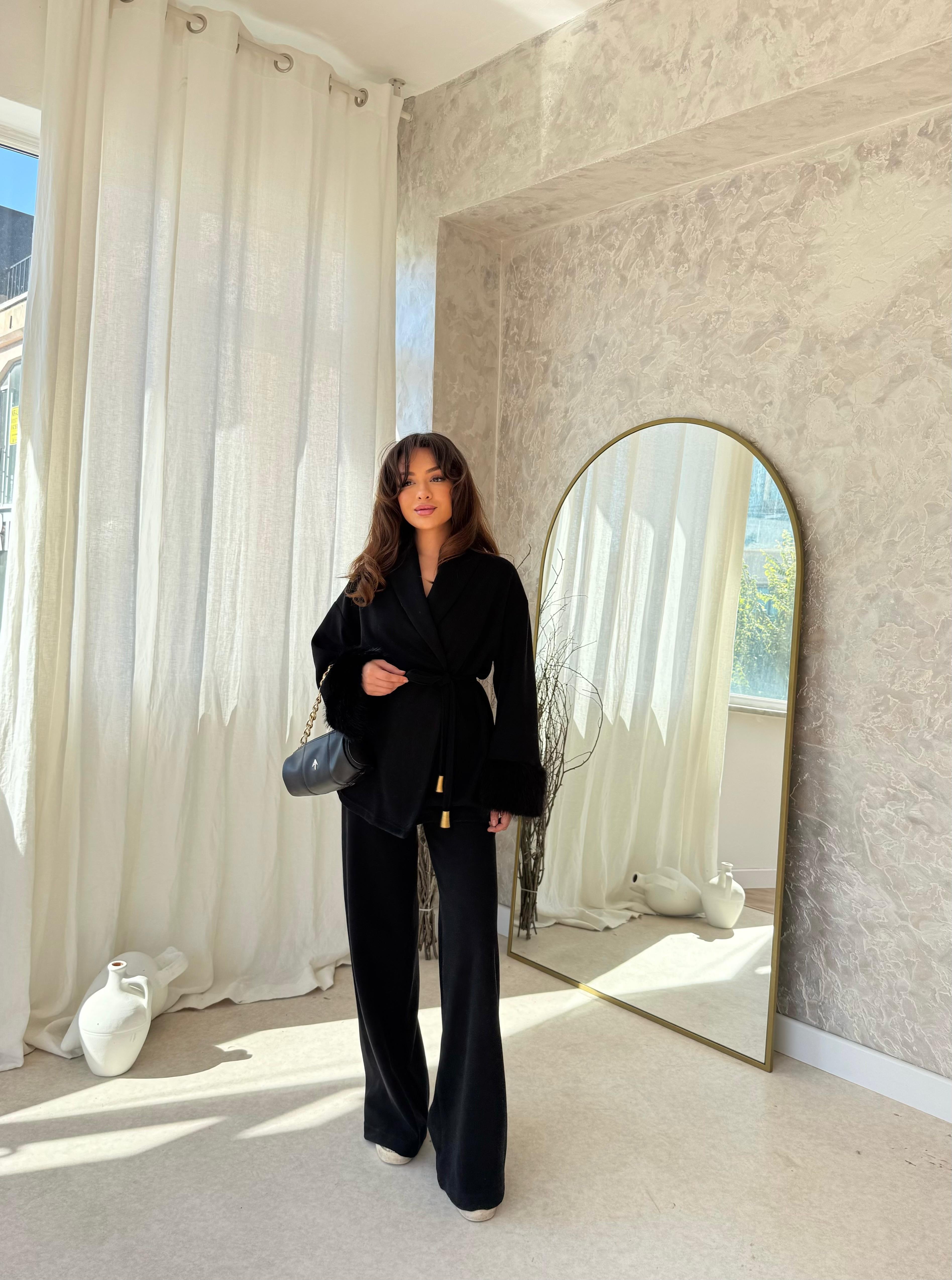 TAKM-1789H&R ButikHüma Kol Detayı Kürklü Takım Siyah