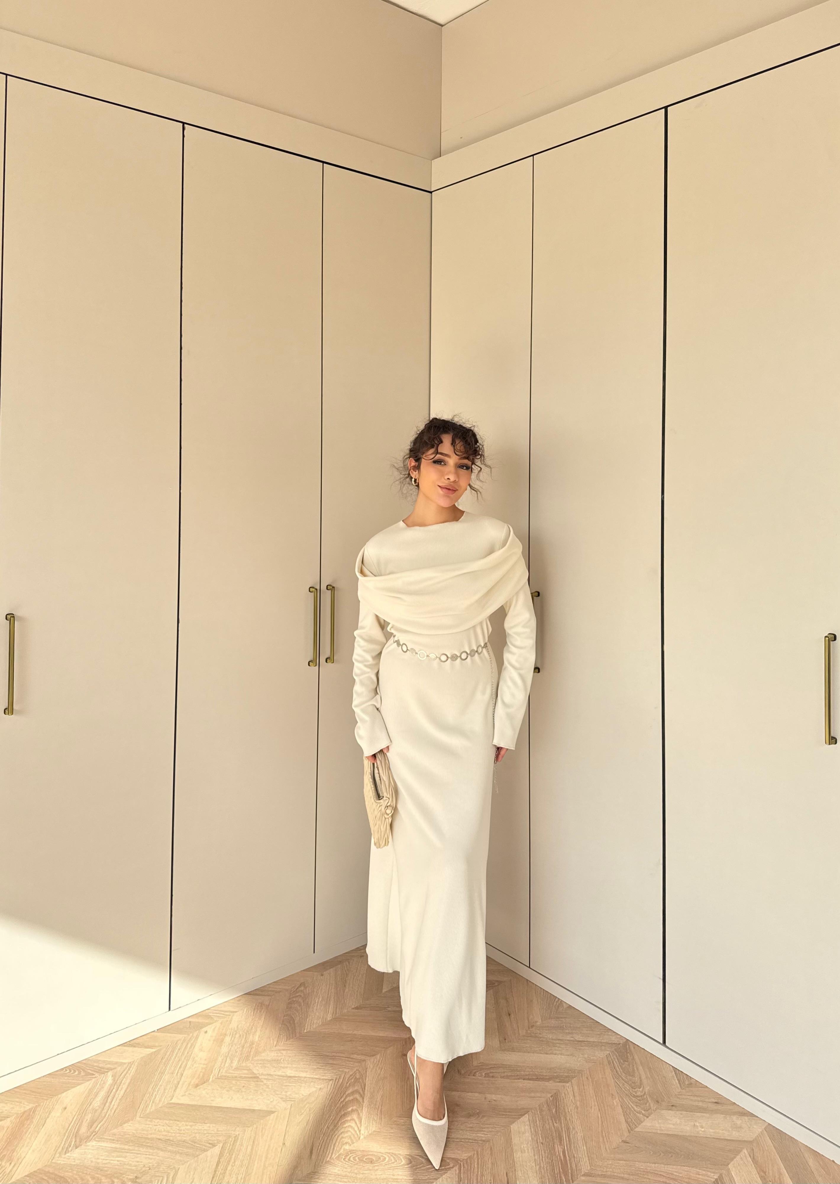 ELBS-003H&R Butikİkra Taka Detaylı Elbise Ekru