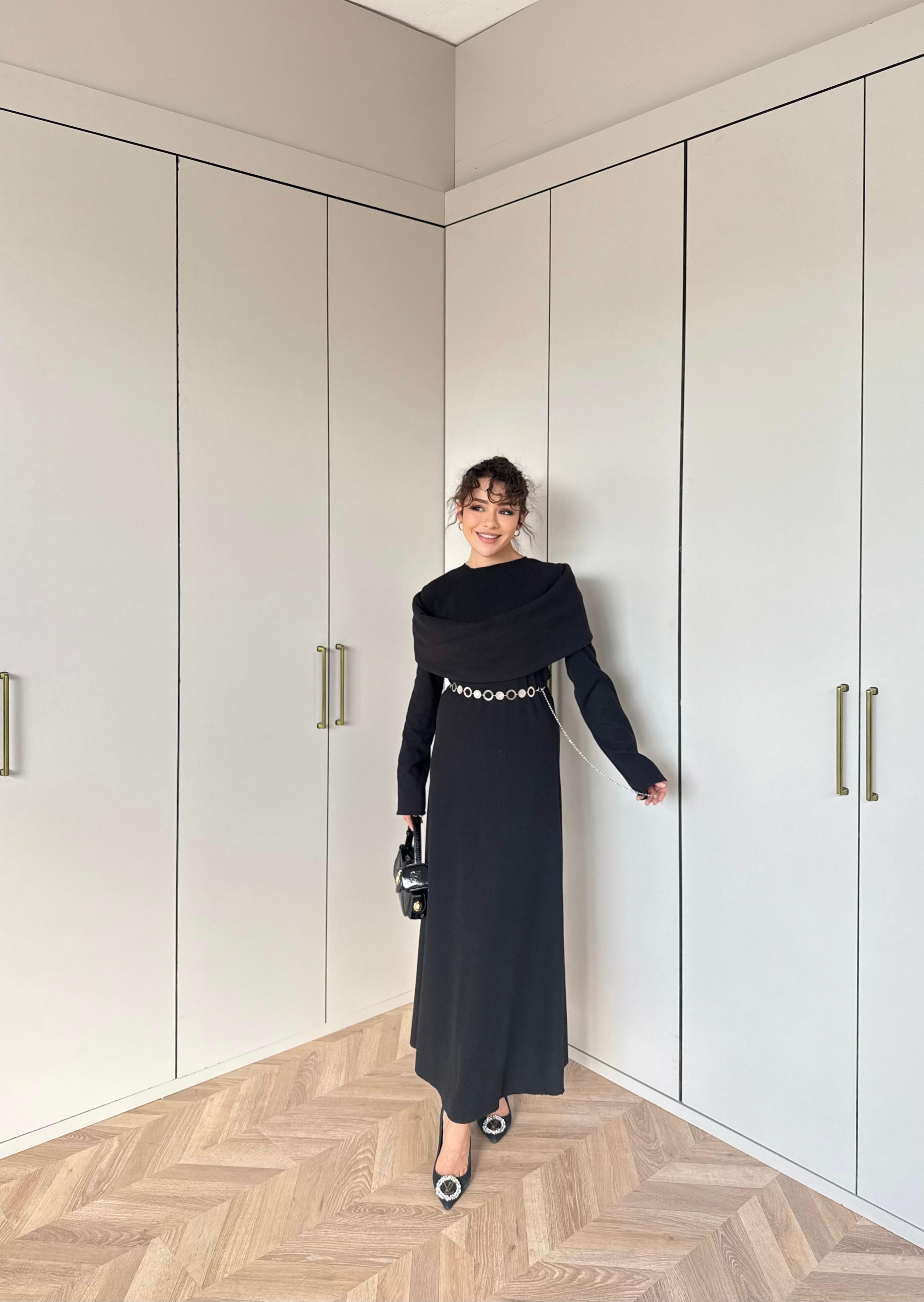ELBS-002H&R Butikİkra Taka Detaylı Elbise Siyah