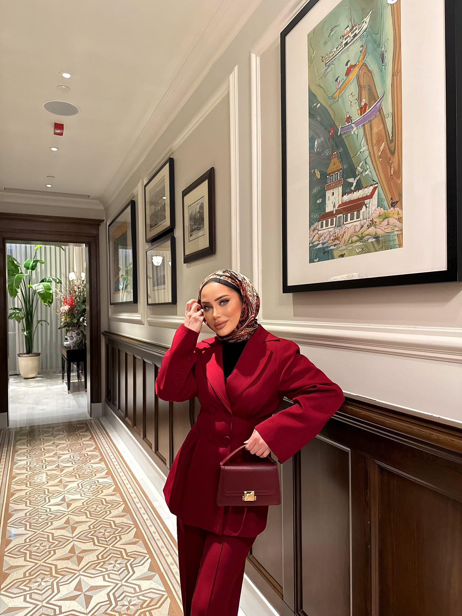 İlsu Bel Büzgüllü Ceketli Takım Bordo