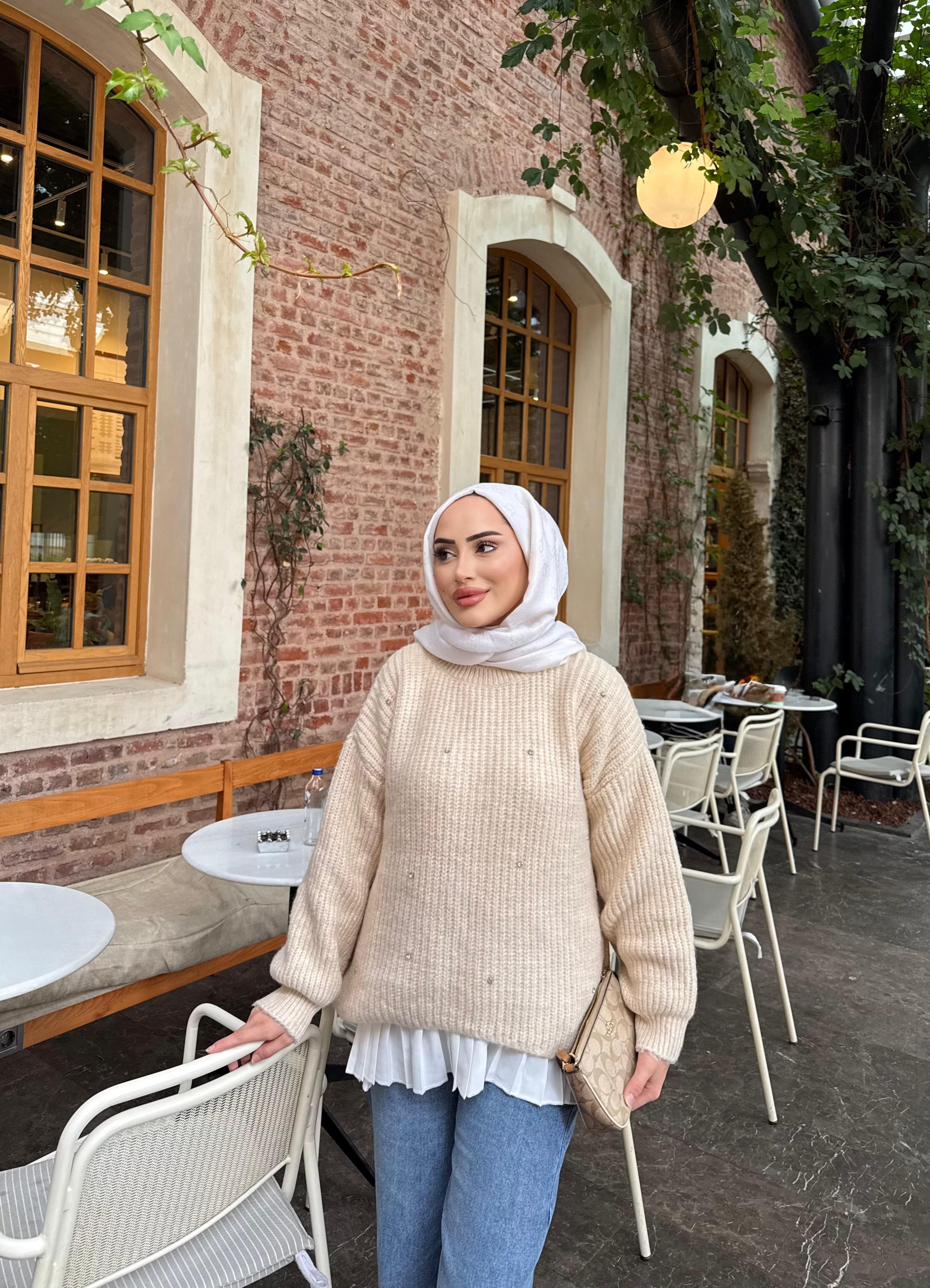 KAZK-569H&R ButikJeo Kazak Taşlı Kazak Beyaz