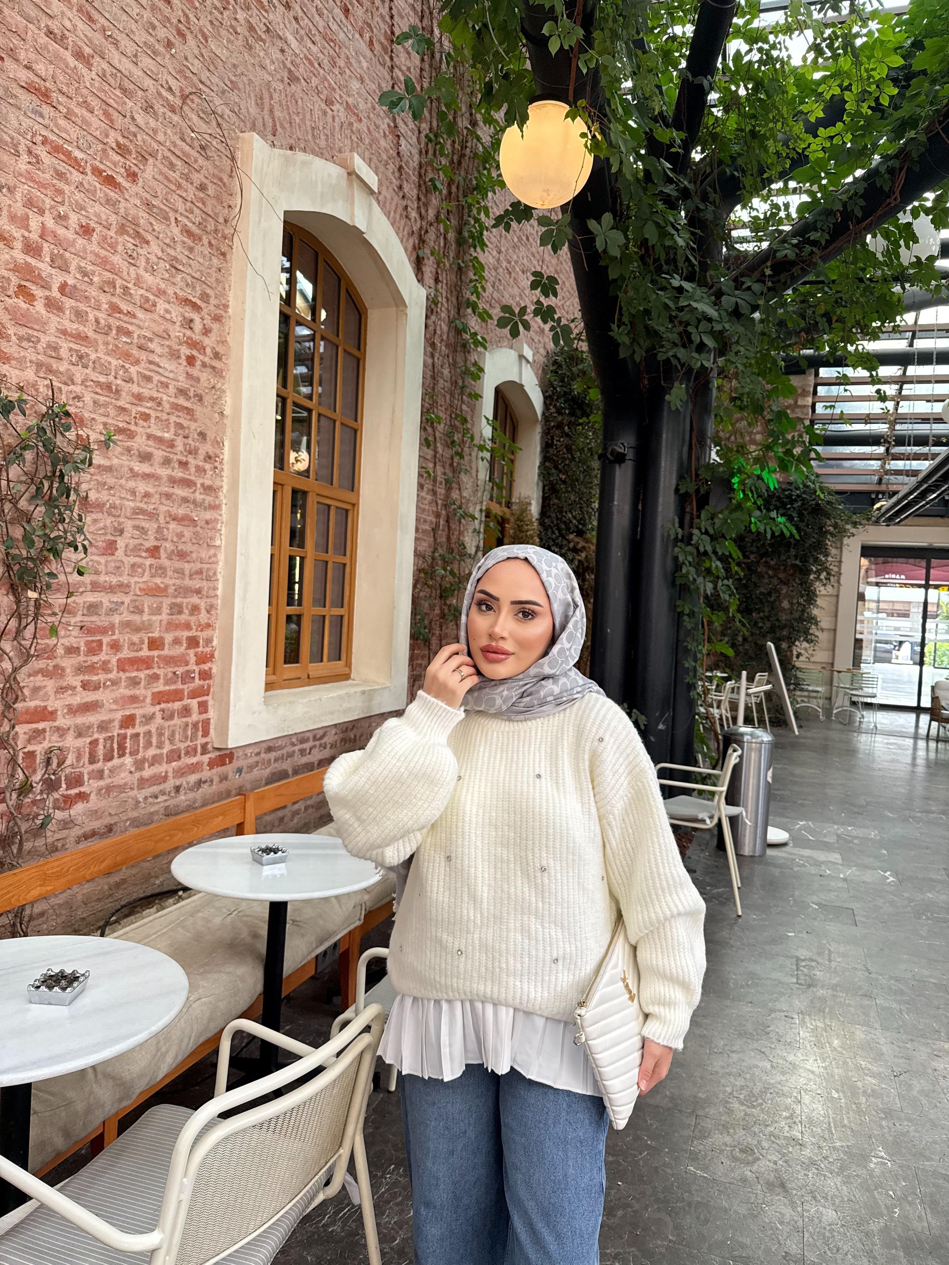 Jeo Kazak Taşlı Kazak Ekru
