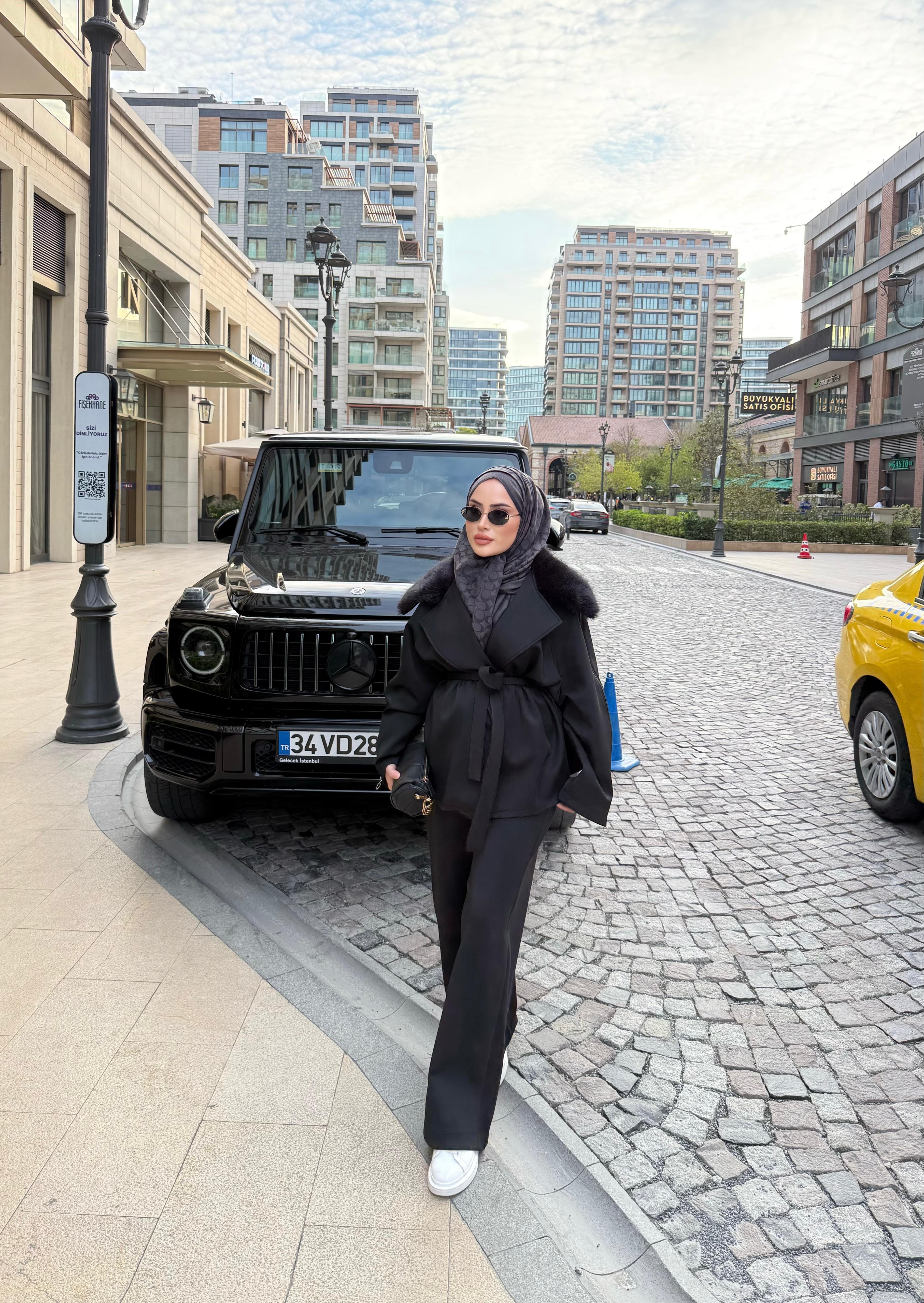 TAKM-1758H&R ButikJoan Kürk Detaylı Scuba Takım Siyah