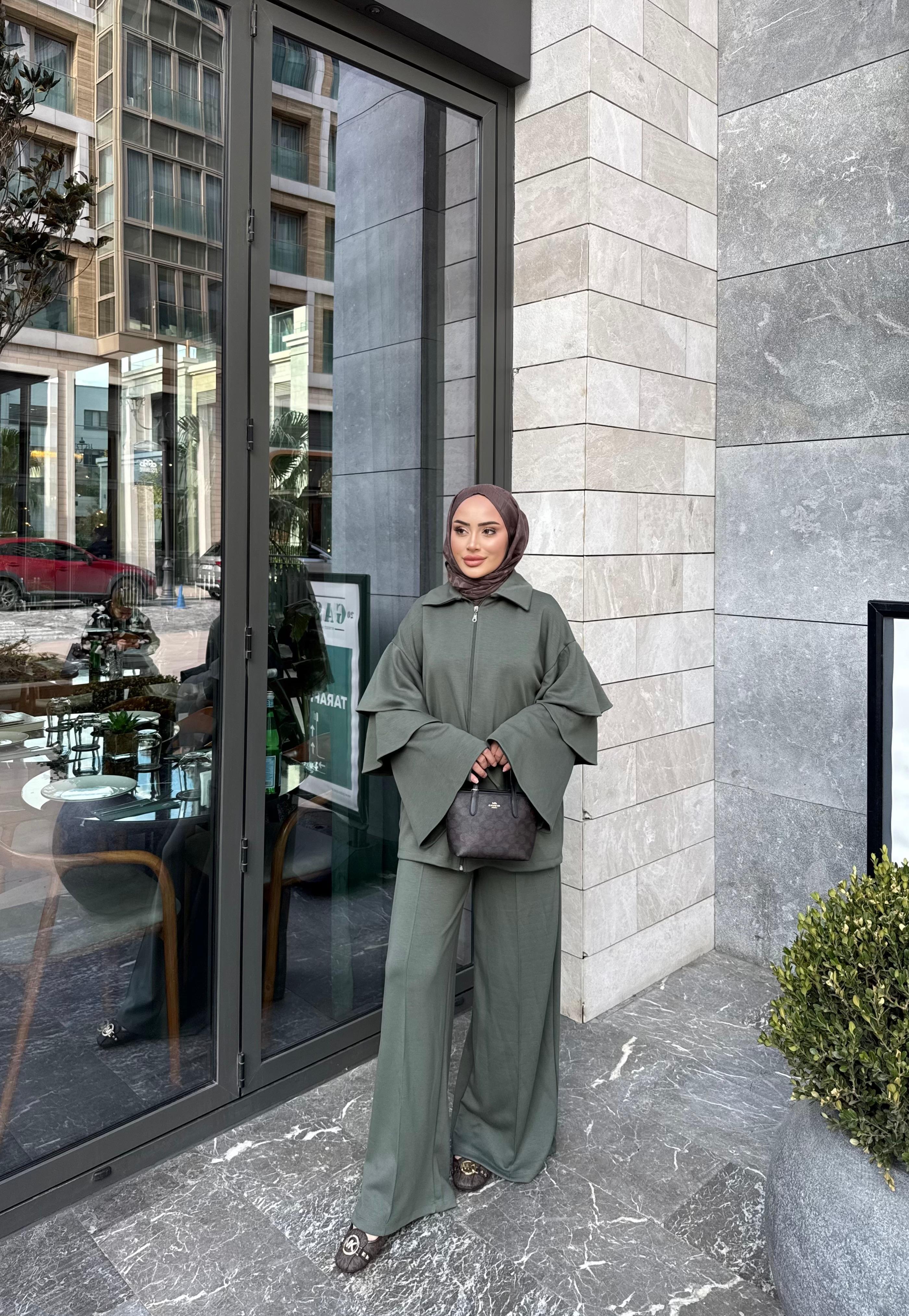 TAKM-1775H&R ButikKol Fırfırlı Oysh Takım Yeşil
