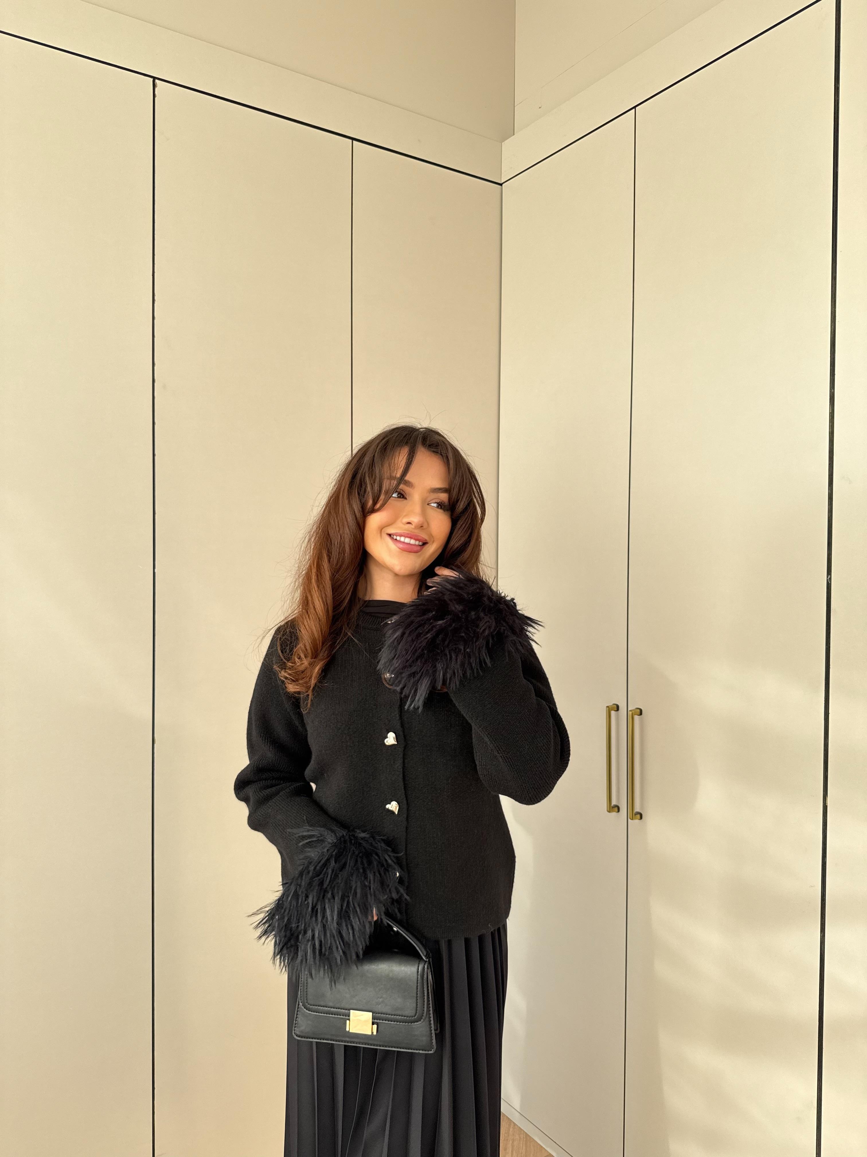 KAZK-575H&R ButikKol Kısmı Püsküllü Mini Kazak Siyah