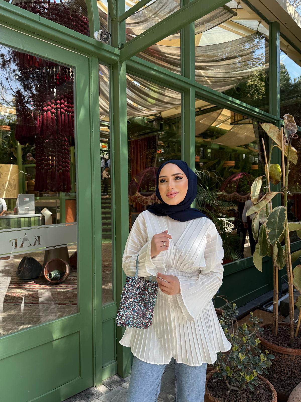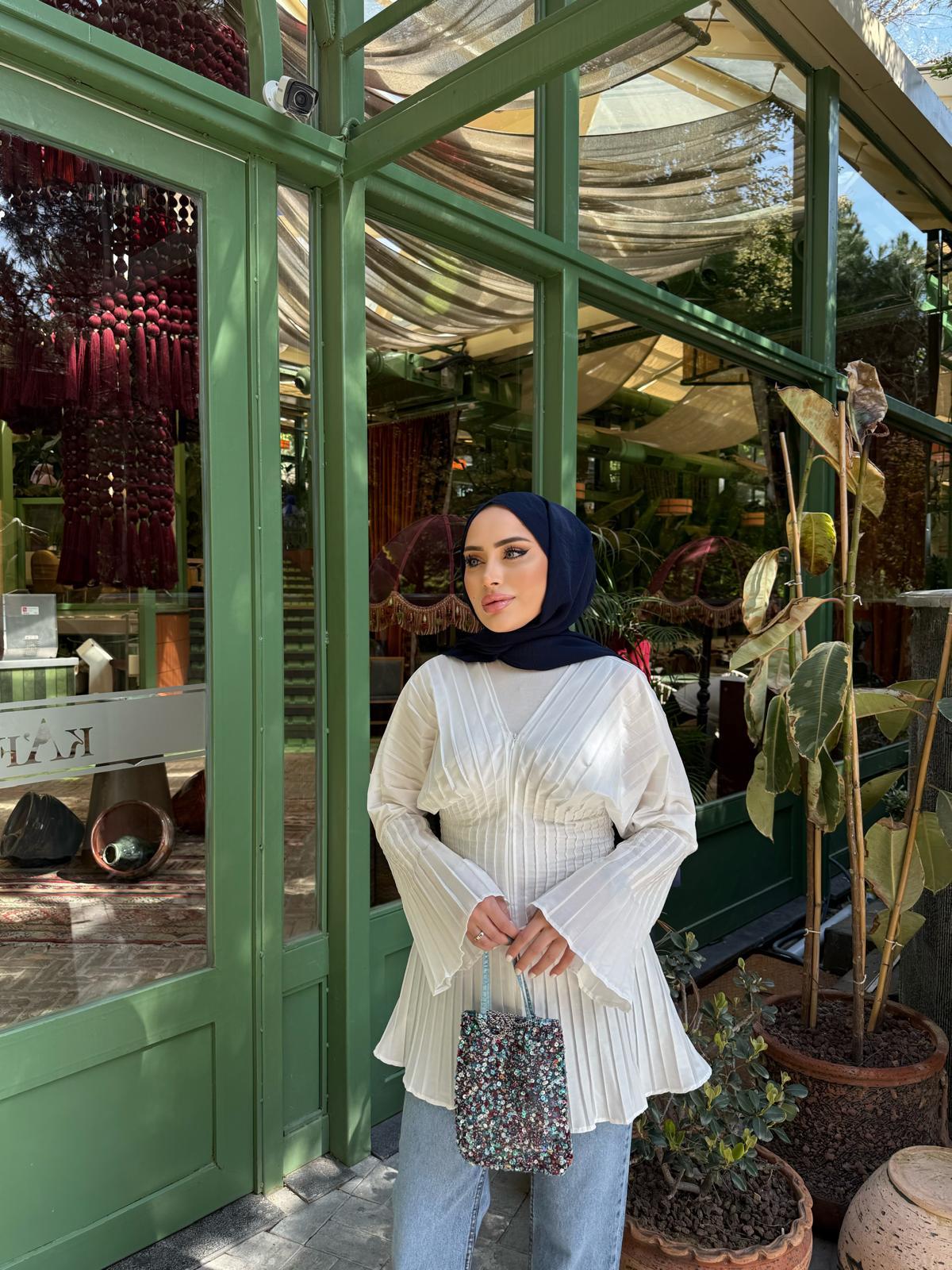 Lata Bel Kısmı Piliseli Gömlek Beyaz