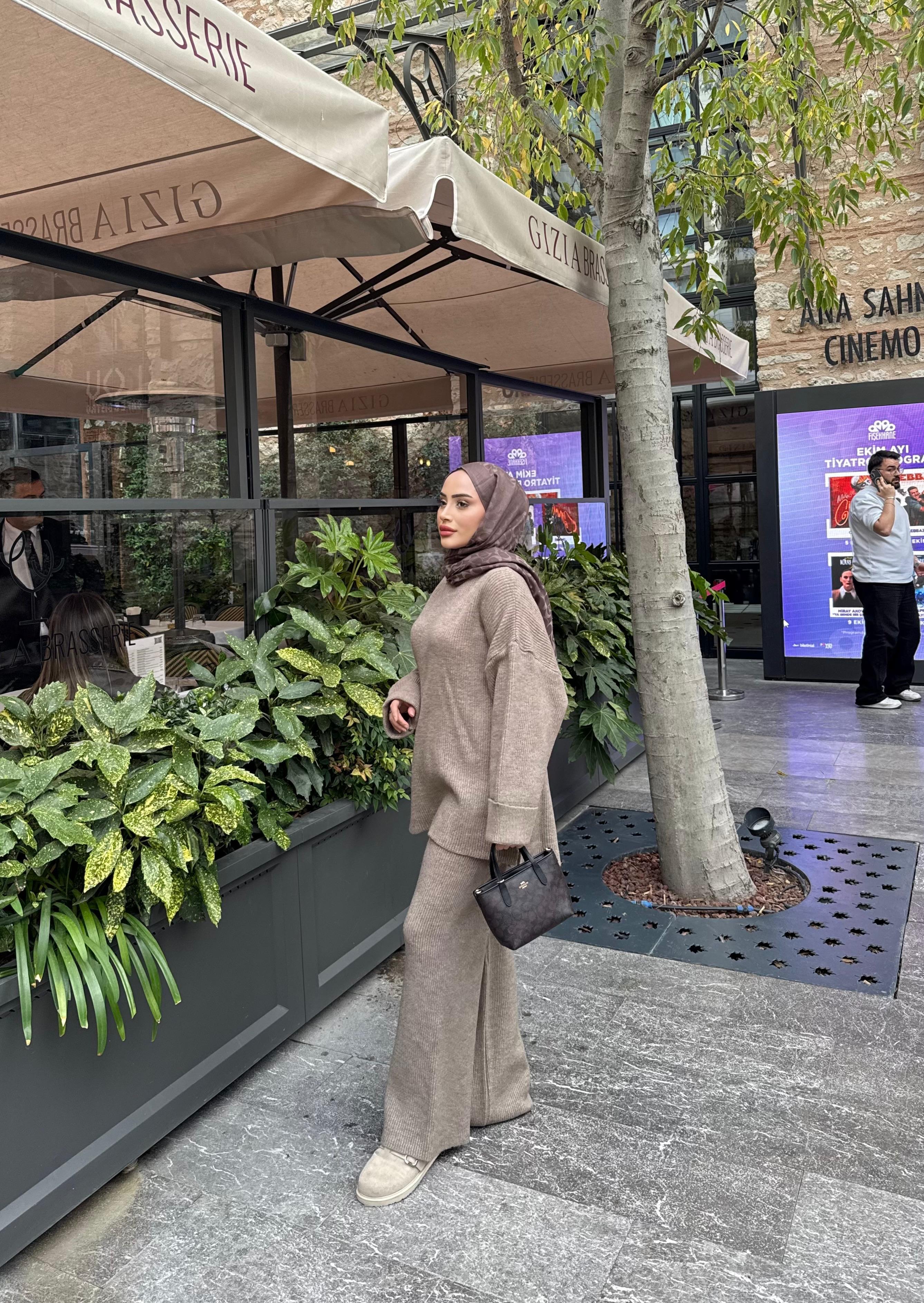 TAKM-1806H&R ButikLeila Triko Takım Vizon