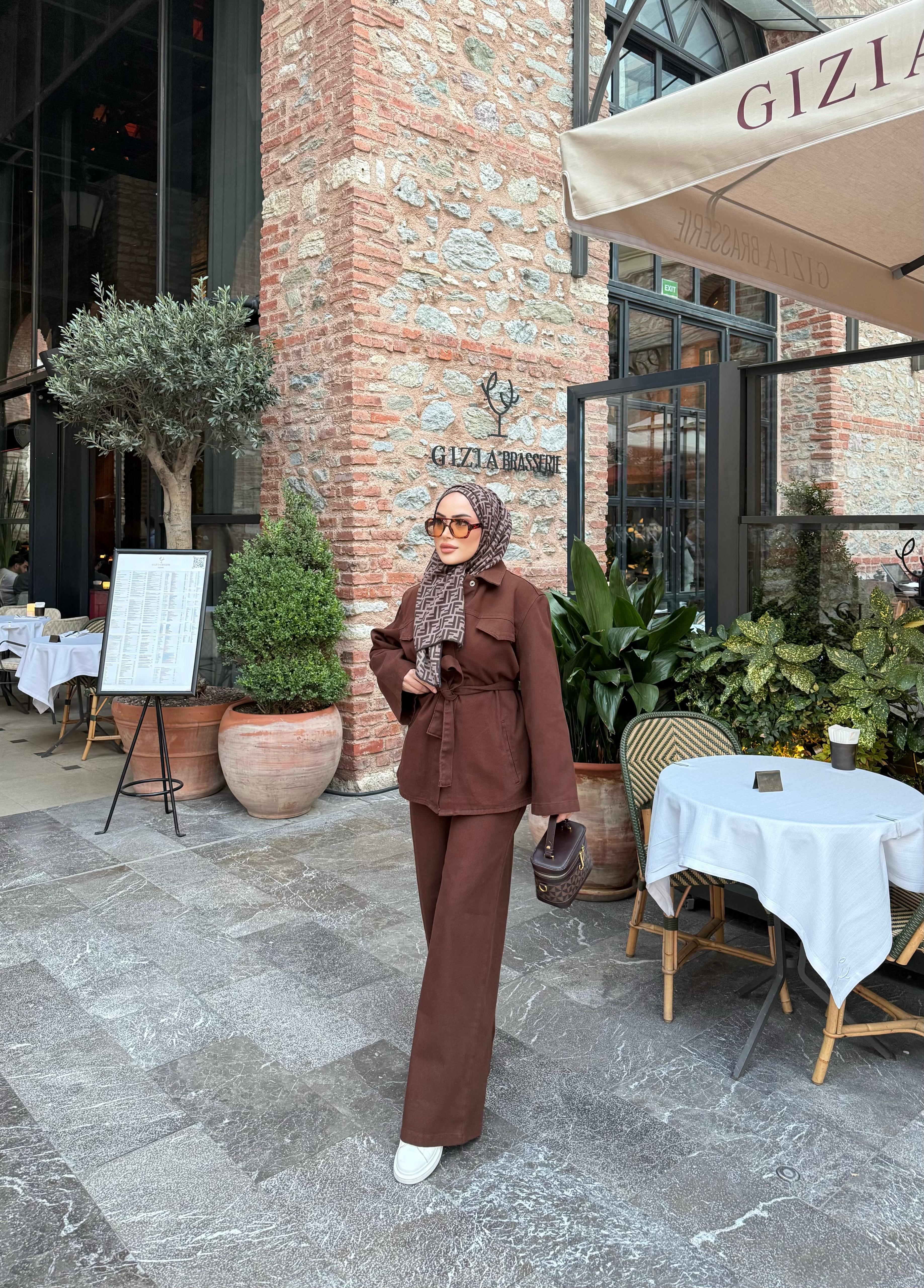 TAKM-1757H&R ButikLena Kot Takım Kahve