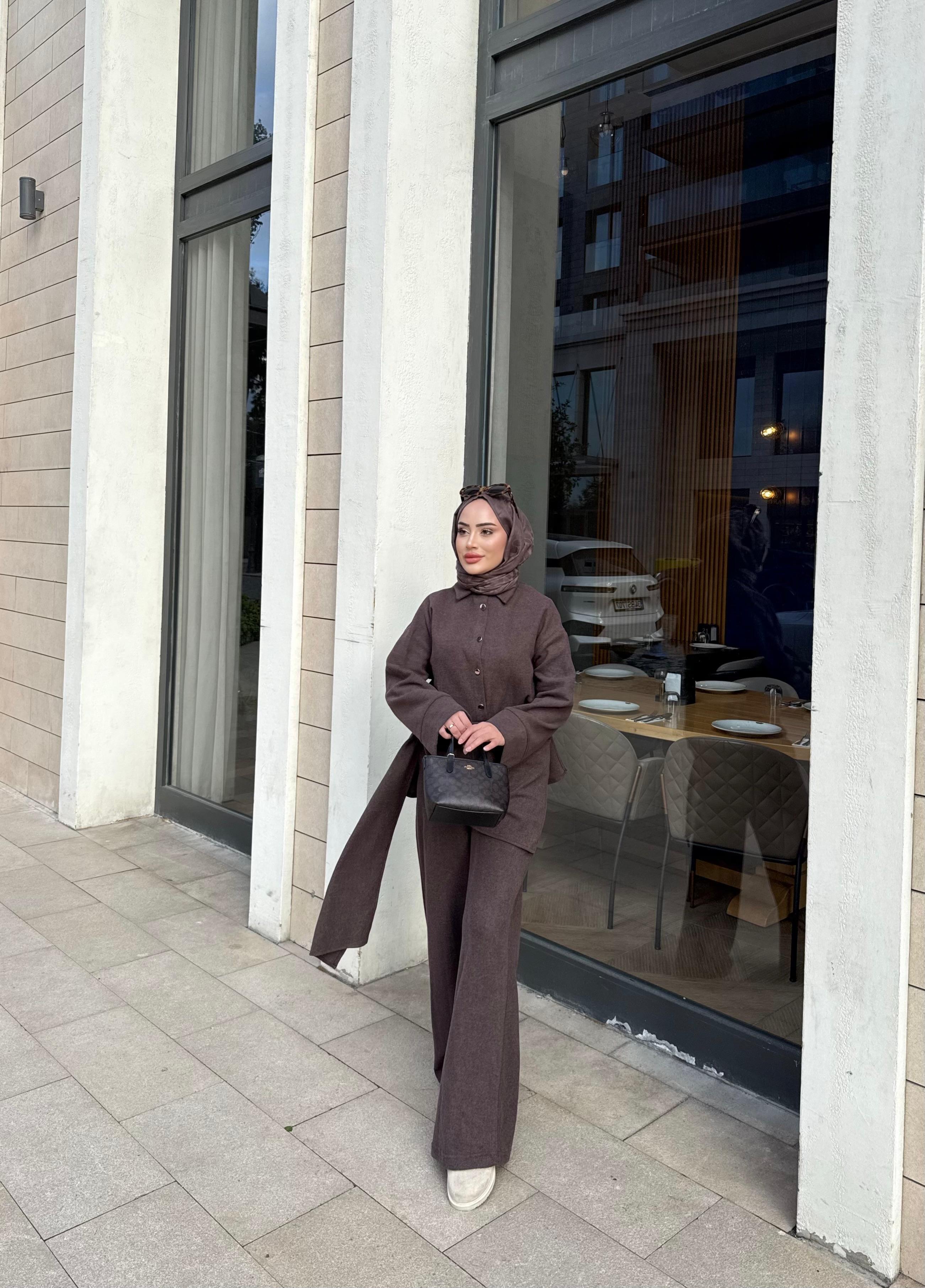 TAKM-1797H&R ButikLew Örme Triko Yan Bağcıklı Takım Kahve