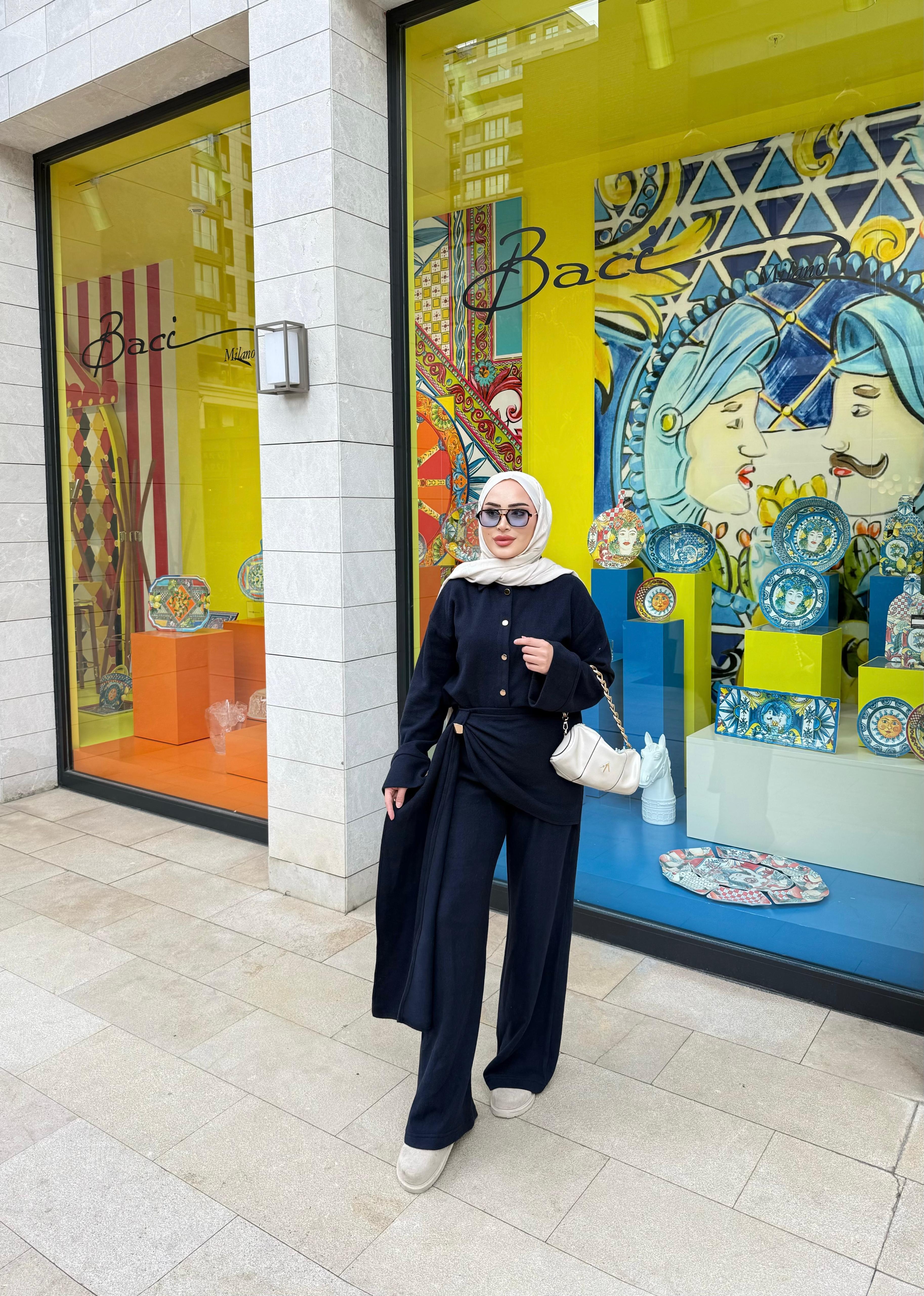 TAKM-1795H&R ButikLew Örme Triko Yan Bağcıklı Takım Lacivert