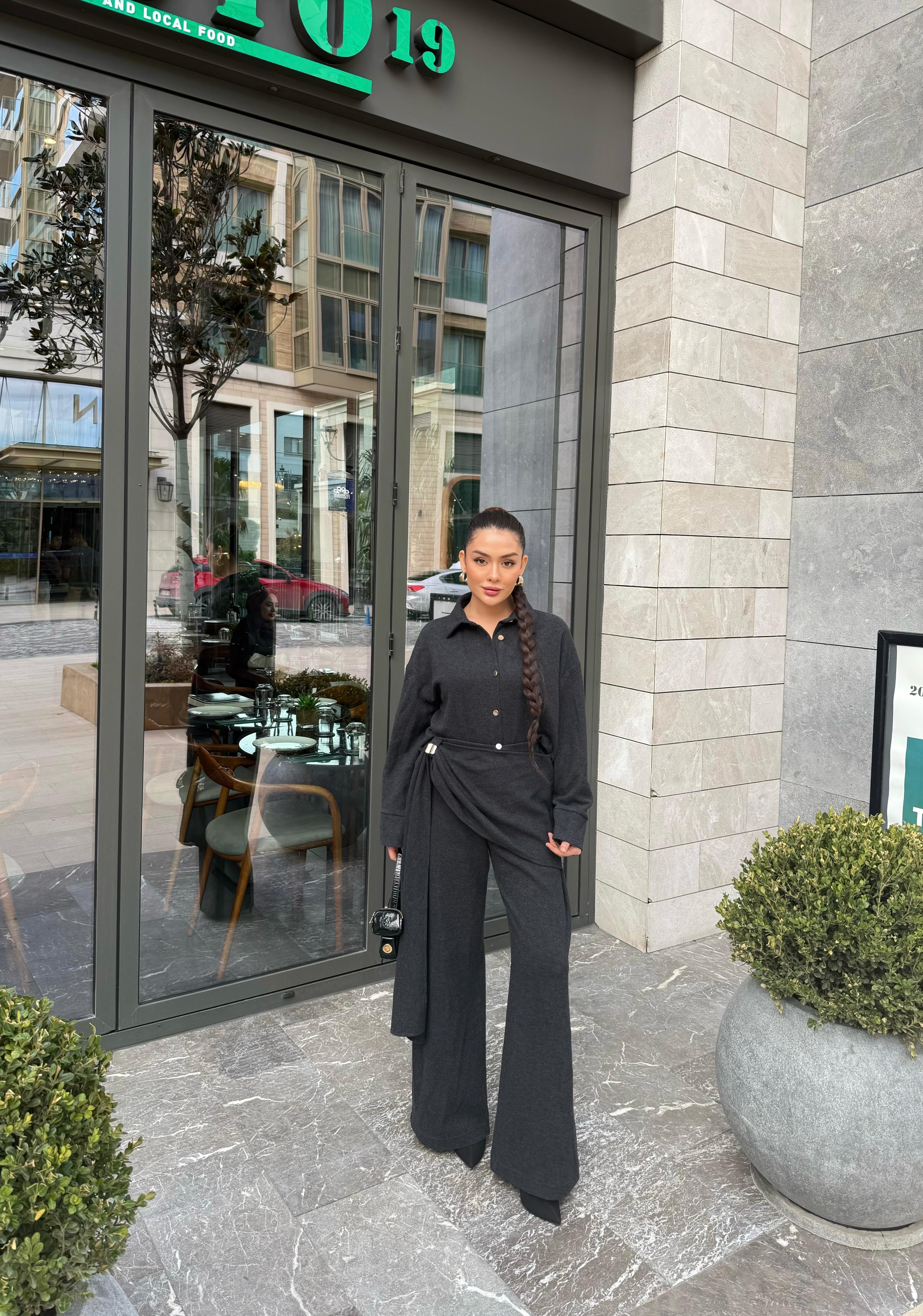 TAKM-1794H&R ButikLew Örme Triko Yan Bağcıklı Takım Siyah