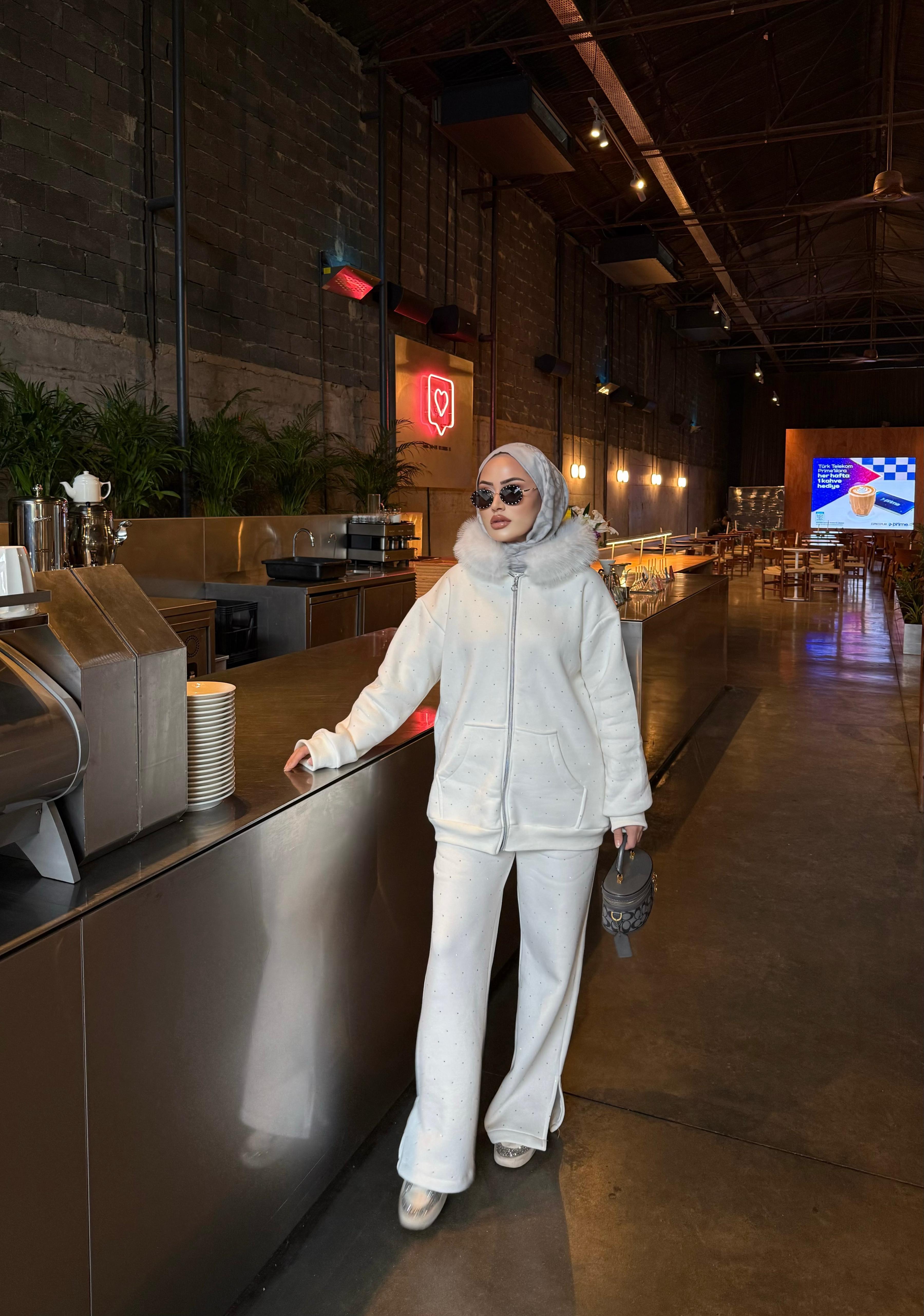 TKM-1907H&R ButikMaja 3 iplik Kürk Ve Taşlı Takım Beyaz