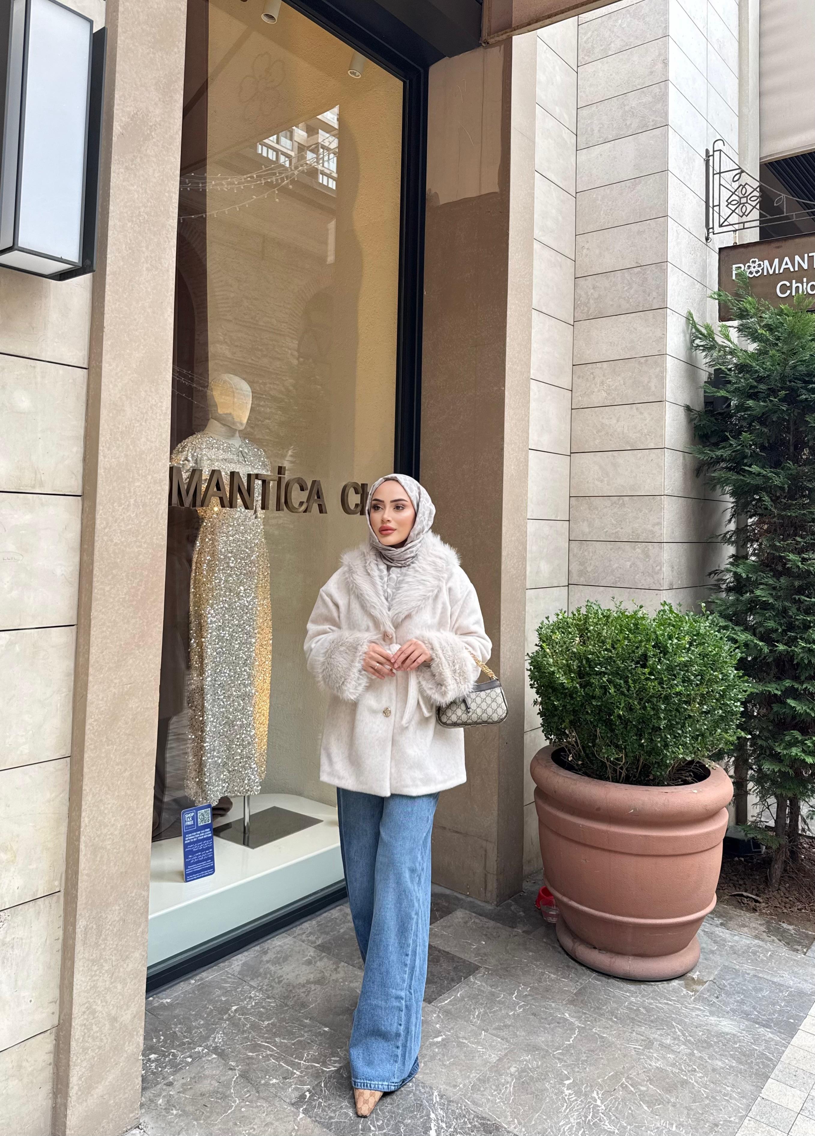 MNT-002H&R ButikMaya Ön Düğmeli Kürk Mont Bej