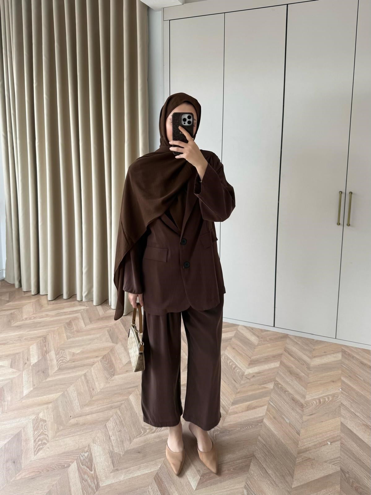 MB-Ayde Modal Düğmeli Takım Acı Kahve
