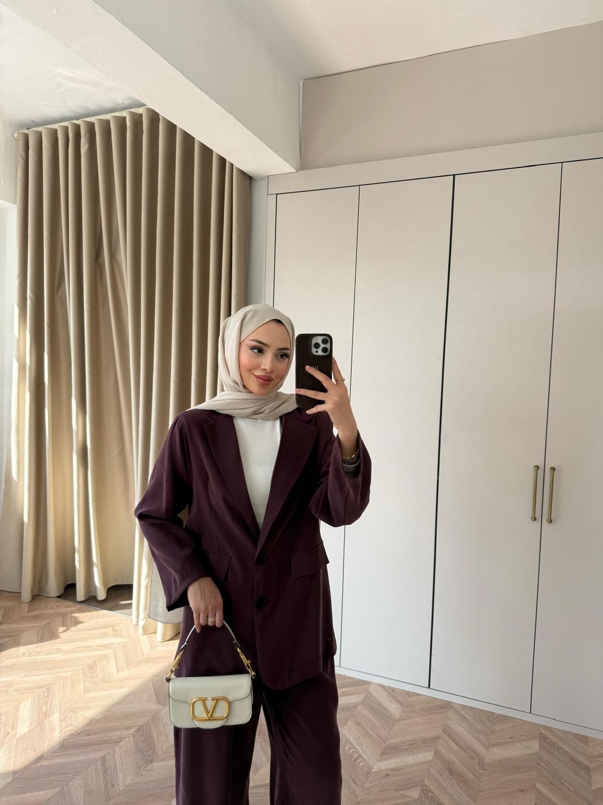 MB-Ayde Modal Düğmeli Takım Mürdüm